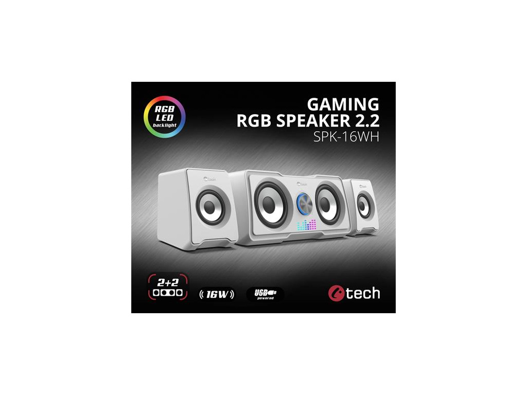C-TECH reproduktory SPK-16, 2.2, 16W, RGB podsvícení, 3,5mm jack, USB napájení, bílé, SPK-16WH