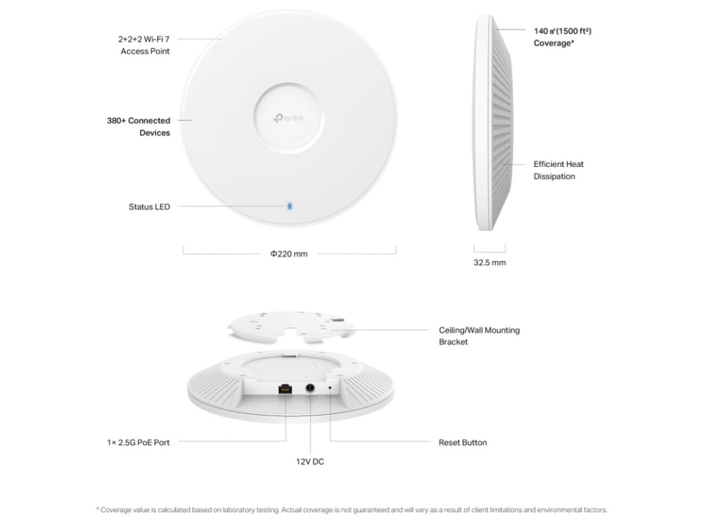 TP-Link EAP772 - BE9300 Wi-Fi 7 Omada Třípásmový přístupový bod, 1x 2,5GLAN, PoE, montáž na strop, EAP772