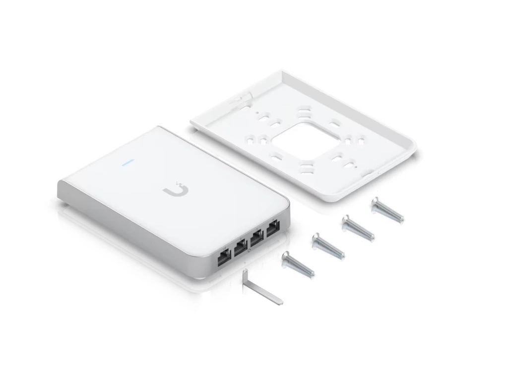 UniFi6 In-Wall Nástěnný přístupový bod WiFi 6 s vestavěným PoE switchem.