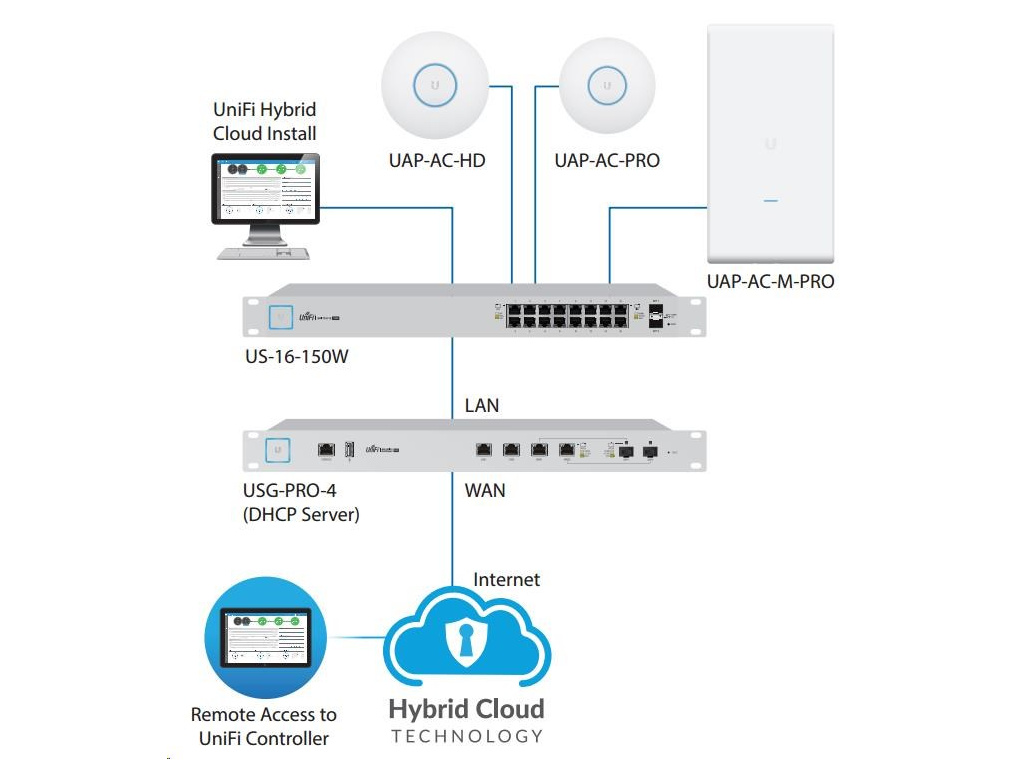 Všechna AP jsou centrálně spravována z jednoho místa pomocí softwarového kontroleru (UniFi Controller software), který je volně stažitelný a podoruje Windows, Linux i MAC. Není tak třeba investovat další prostředky za mnohdy drahé hardwarové kontrolery. Správa probíhá přes standartní webové rozhraní, je tedy přístupná odkudkoliv, např. z mobilu, tabletu atd. Celá síť lze nastavit doslova během několika minut a nepotřebujete k tomu žádná speciální školení, vše je maximálně jednoduché.