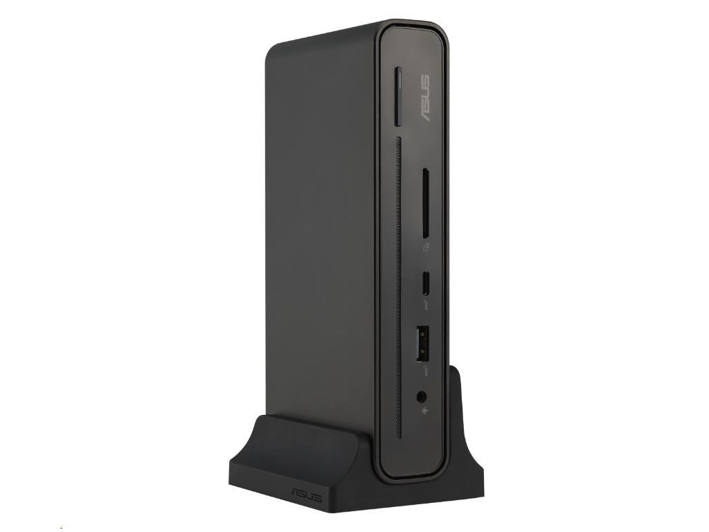 ASUS Triple Display USB-C Dock je elegantní a kompaktní zařízení, které usnadňuje připojení vašeho notebooku. Použitím jediného kabelu můžete napájet notebook, připojit se k síti a periferním zařízením a pracovat na až čtyřech monitorech současně, včetně monitoru notebooku a tří externích monitorů. Toto dokovací zařízení je vybaveno integrovanou čtečkou SD karet, což přispívá k jeho všestrannosti a je vhodné pro různorodé obchodní scénáře.
