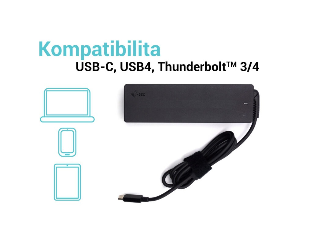 I-tec Universal Charger USB-C PD 3.0 100W Jde o náhradu za již ukončený model: CHARGER-C112W Popis Tento univerzální napájecí adaptér USB-C s výkonem 100 W je skvělou volbou pro napájení jakéhokoli notebooku nebo jiného zařízení vybaveného konektorem USB-C, který podporuje USB-C Power Delivery s maximálním příkonem 100 W. Napětí se nastavuje automaticky podle specifikace USB Power Delivery a jednotlivých profilů v následujících krocích: 5 V / 9 V / 12 V / 15 V / 20 V s max. 5 A odběrem proudu. Napájecí adaptér je lehký a velmi dobře přenosný; je vybaven inteligentní ochranou proti proudovému přetížení, přepětí, zkratu a přehřátí. Specifikace Univerzální 100 W napájecí adaptér USB-C pro napájení notebooků, tabletů, chytrých telefonů a dalších zařízení vybavených nabíjecím portem USB-CVstupní napětí AC 100-240 V, 50-60 Hz, max.1.8 A Výstupní výkon (max.): 100 W Účinnost: více než 89 % Výstupní napětí USB-C: DC 5 V / 9 V / 12 V / 15 V / 20 V Výstupní proud USB-C: max. 5A Výstupní výkon USB-C (max:) 100W Ochrana proti proudovému přetížení, přepětí, zkratu a přehřátí. Provozní teplota: 0 °C – 40 °C Relativní vlhkost: 10 % – 100 % Rozměry výrobku: 162 x 45 x 30 mm Hmotnost výrobku: 310 g Obsah balení Produkt Manuál Napájecí kabel pro konkrétní zemi (EU, UK nebo USA)EAN: 8595611706622