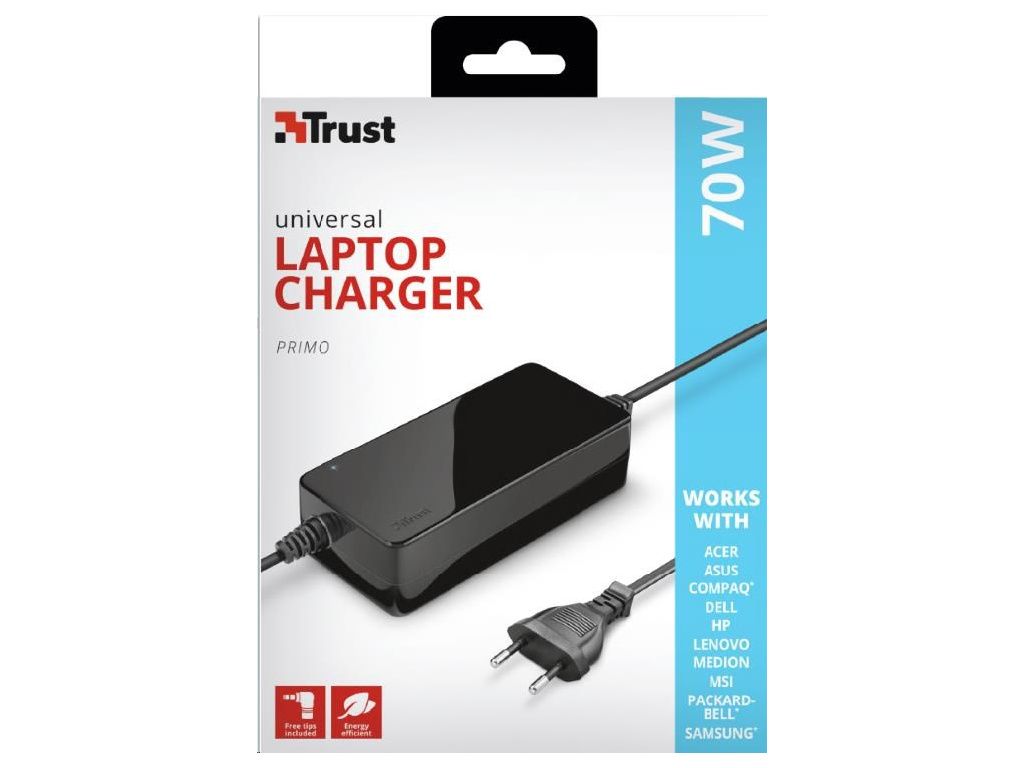 TRUST Univerzální napájecí adaptér pro notebooky Primo 70W-19V Laptop Charger, 22141