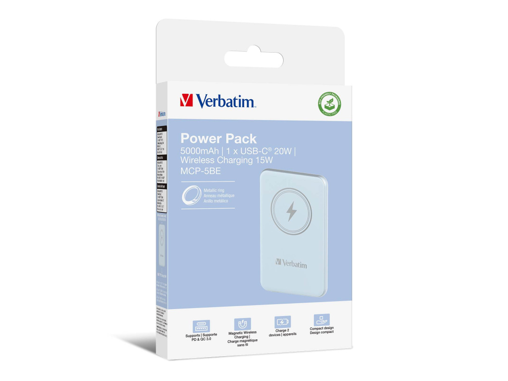 VERBATIM Powerbanka Charge 'n' Go, Magnetická, 5000 mAh, USB-C, Modrá, 32242