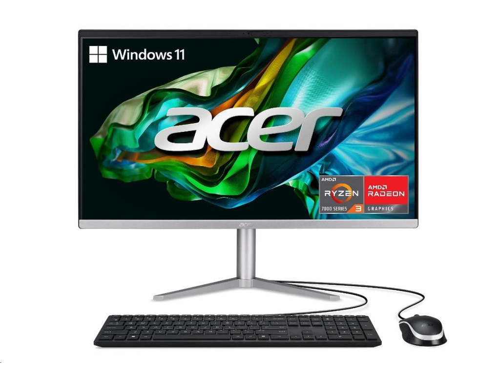 ACER PC AiO Aspire C24-1300, Ryzen 3 7320U,23,8" FHD IPS,8GB,512GB M.2 SSD,Radeon610M,W11Original,stříbrná,KB+Mouse, DQ.BKREC.002