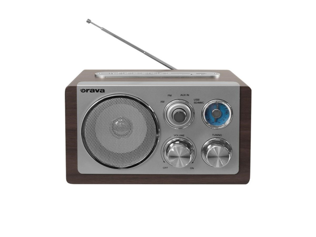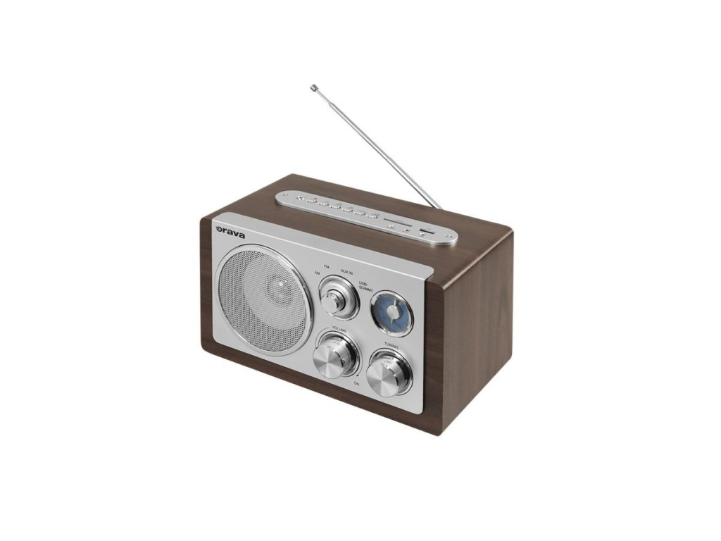 Orava RR-29 A rádio, 1 x 3,5W, AM / FM rádio, USB, AUX vstup, SD karta, hnědá / stříbrná, RR-29 A