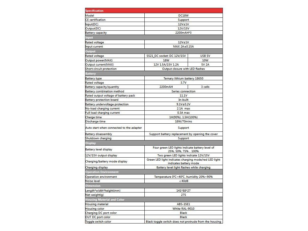 - použítí: např. pro zálohování routerů, modemů, kamerových systémů a podobných zařízení napájených DC 12V/15V