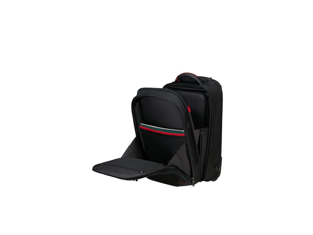 Batoh na kolečkách na notebook Samsonite Laptop Backpack/WH 17.3'' z prémiové kolekce PRO-DLX 6. Materiál: exteriér - Ballistic nylon, Interiér - 100% Recycled Polyesther (RPET) Popis: kabinové zavazadlo prostor na notebook 43,9 cm / 17,3'' prostor na tablet 26,7 cm / 10,5'' ochrana RFID dvojitý USB port (USB-A, USB-C) karabinka na klíče organizér EASY PASS Systém - umožňuje přístup kabelů skrze různé kapsy zavazadla bez toho, aby se vypojily z elektronického zařízení během jeho nabíjení. síťovaná kapsa odolnost proti vodě prostor na oděvy s křížovými upínacími pásy smart sleeve - návlekový pásek sloužící ke snadnému připevnění na rukojeť kufru 2 kolečka s možností ukrytí kapsa na dokumenty polstrování v zádové části + popruhy rozměr: 34 x 50 x 20 cm objem: 26,5 l hmotnost: 2,6 kg Záruka 5 let.EAN: 5400520228734