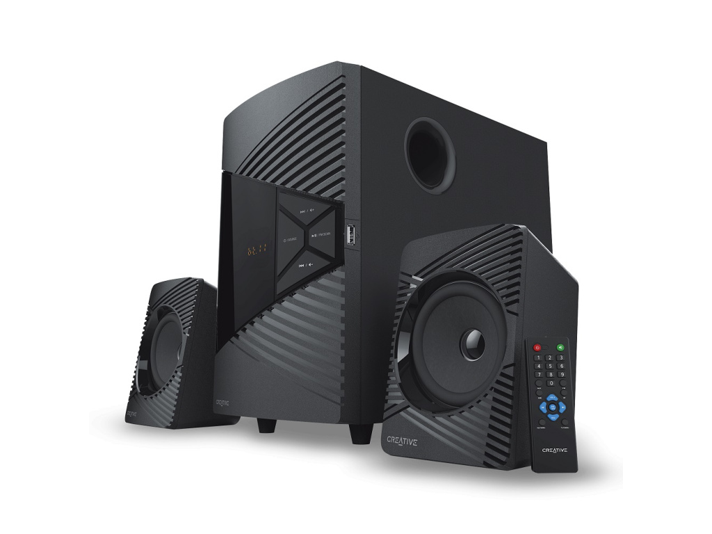 Creative SBS E2500 je vysoce výkonná reproduktorová soustava 2.1, která umožňuje poslech bohatého a výrazného zvuku prostřednictvím široké škály možností připojení. Streamujte bezdrátově přes připojení Bluetooth, poslouchejte oblíbené rozhlasové kanály v pásmu FM nebo přehrávejte přímo z libovolného zařízení USB! Kabelové připojení umožňuje 3,5 mm zdířka vstupu AUX. Nastavení přehrávání hudby a zvuku je pohodlně přístupné přímo na reproduktorech a různé předvolby ekvalizéru na bezdrátovém infračerveném ovladači, který je standardně ve výbavě. Tlačítka na přední straně systému poskytují snadný přístup k ovládání přehrávání hudby a hlasitosti. Pro ještě větší pohodlí dodáváme infračervený dálkový ovladač, abyste mohli upravovat nastavení zvuku z reproduktorů, hlasitost a přehrávání hudby bezdrátově. Na dálkovém ovladači si také můžete vybírat různé předvolby ekvalizéru vhodné pro hudební žánry, které posloucháte, nebo pro momentální náladu.Technické parametry