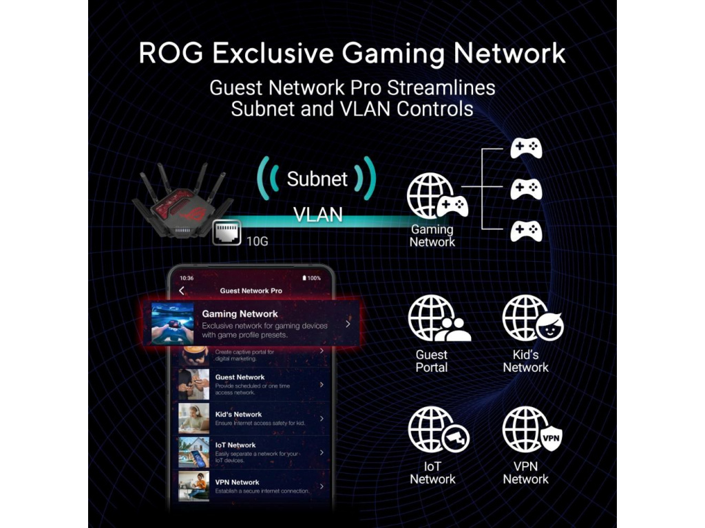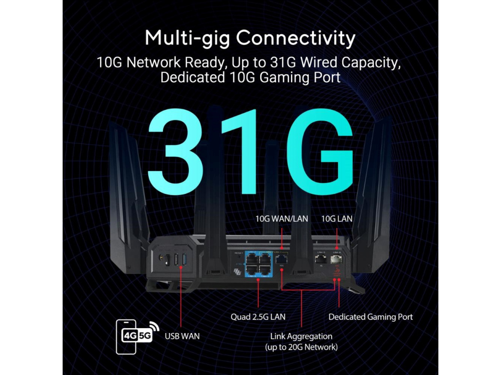 Řada ROG Rapture stále posouvá hranice možností v oblasti her a sítí. Nový ROG Rapture GT-BE19000 je třípásmový 12streamový herní router WiFi 7 přizpůsobený pro hry a počítače nové generace. S rychlostí až 1,9 Gb/s, výkonnou 31G kabelovou kapacitou a exkluzivní sítí ROG Gaming Network nabízí nové způsoby, jak urychlit vaše hraní.