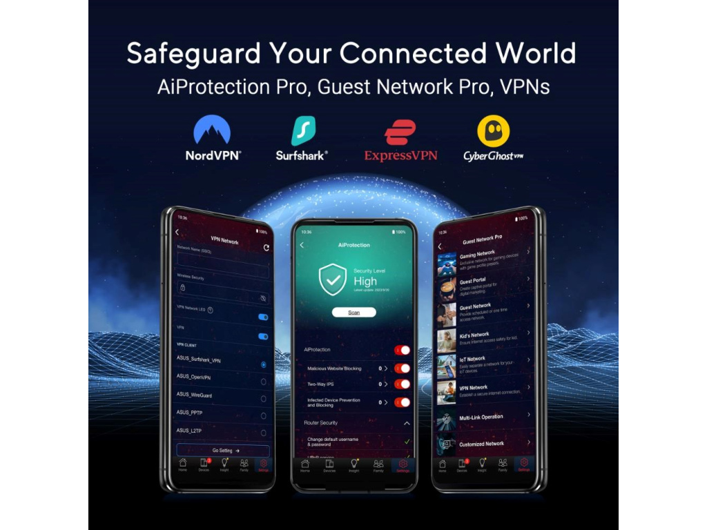 | VPN | Instant Guard VPN Client L2TP VPN Client Open VPN VPN Client PPTP VPN Client WireGuard VPN Server IPSec VPN Server Open VPN VPN Server PPTP VPN Server WireGuard VPN Fusion |