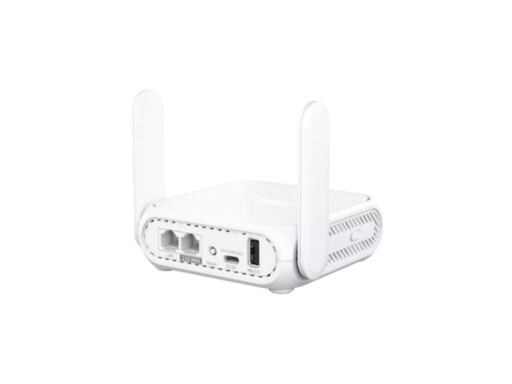 Dvoupásmový cestovní router WiFi 7 (802.11be) s rychlostí až 3600 Mb/s, podporou 4G a 5G mobilního sdílení připojení, režimem veřejné WiFi (WISP), 2.5G portem, funkcí Guest Network Pro s SSID pro VPN, IoT zařízení a portál pro hosty, pokročilým zabezpečením sítě a napájením přes USB-C Power Delivery.