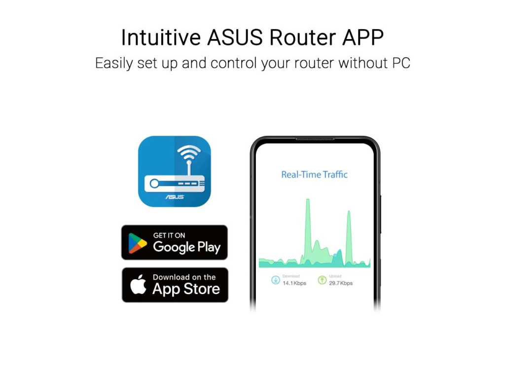 ASUS RT-AX52 Pro (AX3000) Dvoupásmový WiFi 6 rozšiřitelný router, okamžitá ochrana, plánování rodičovské kontroly, vestavěná VPN, kompatibilní s AiMesh