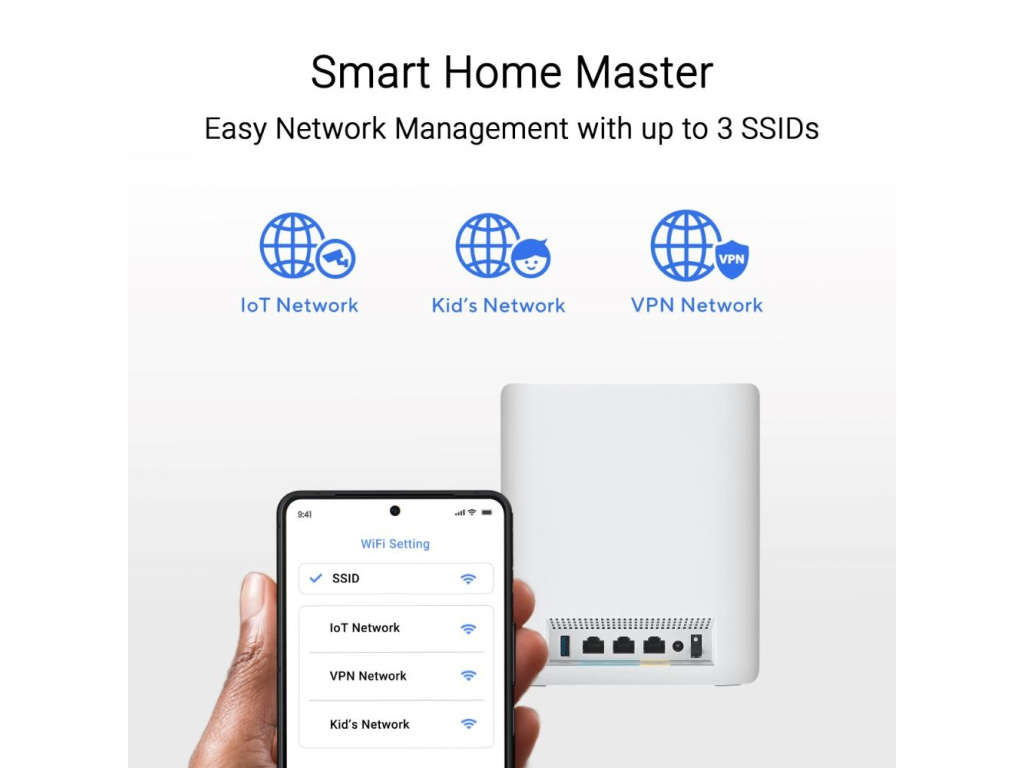 - Vytvoření až tří SSID pro zařízení IoT a rodičovskou kontrolu s funkcí Smart Home Master Network
