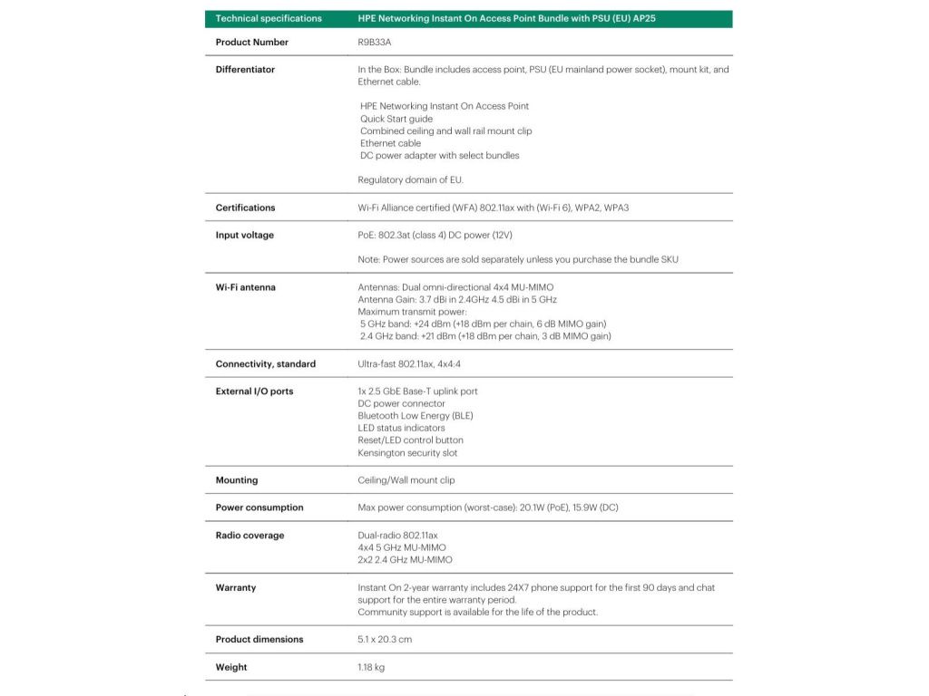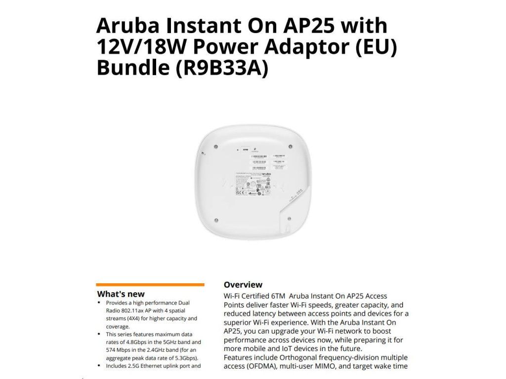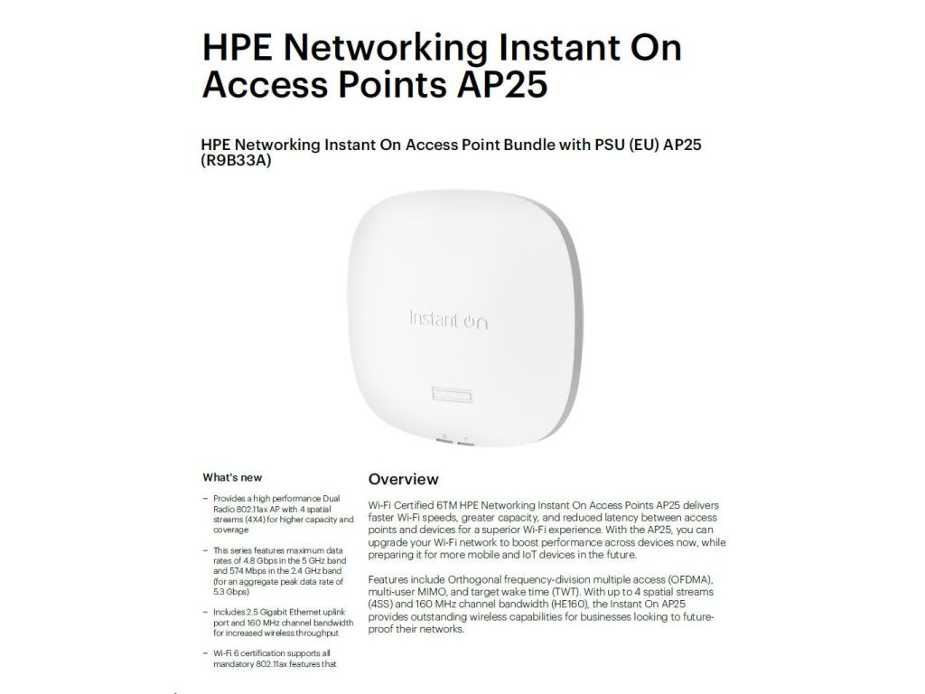 HPE Networking Instant On Access Point Bundle with PSU (EU) AP25 (R9B33A), R9B33A