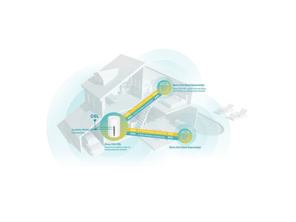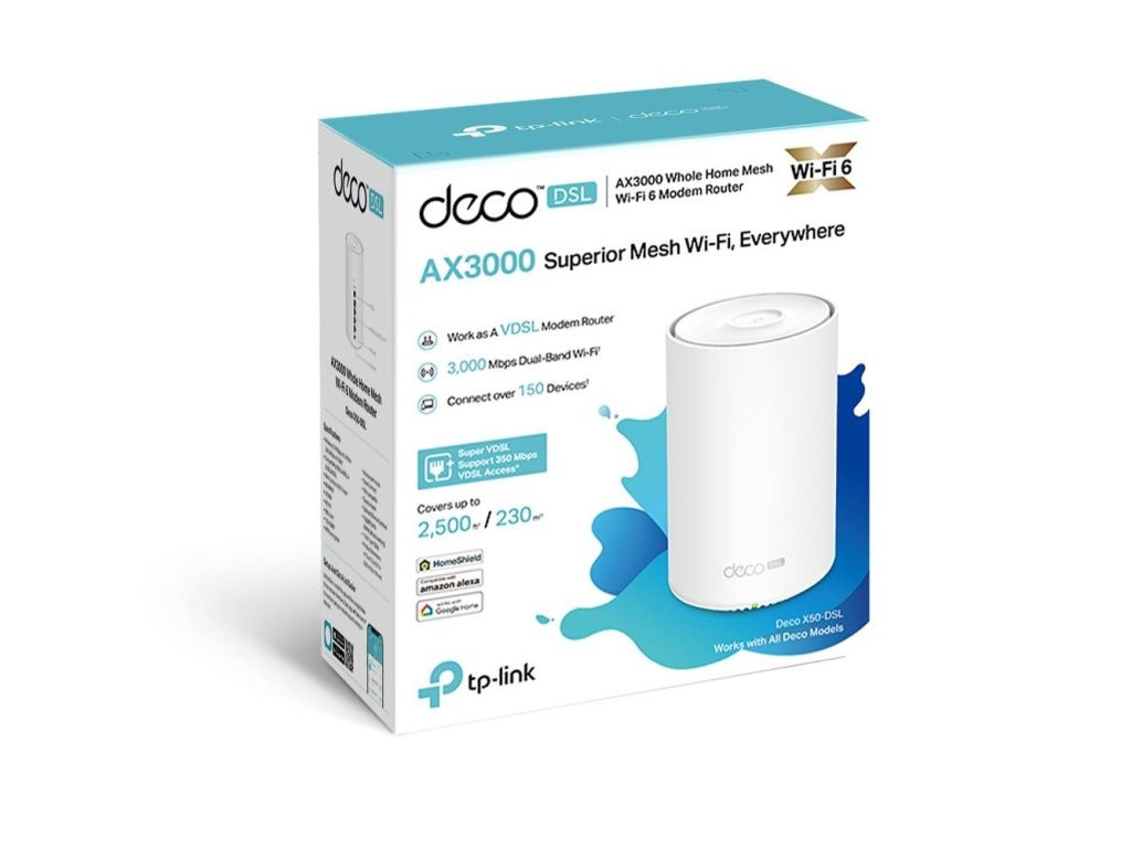 TP-Link Deco X50-DSL WiFi6 Mesh (AX3000,2,4GHz/5GHz,4xGbELAN/WAN,1xDSL Port (VDSL2/ADSL2+/ADSL2/ADSL), Deco X50-DSL(1-pack)