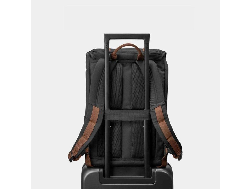 Vedle polstrovaného, prodyšného zádového panelu pro dlouhé nošení poskytují pohodlí také polstrované ramenní popruhy. Jejich délku snadno nastavíte pomocí přezek YKK. Bezchybně navržená konstrukce batohu, měkká výstelka částí, jež se bezprostředně dotýkají vašeho těla, a zajištěná cirkulace vzduchu přispívají k pocitu lehkosti i při nošení velkého nákladu. K vašemu komfortu napomáhají i další, do detailu dotažené maličkosti. Příkladem je popruh pro protažení rukojeti zavazadla umístěn na zadní straně batohu. Dále rukojeť na horní straně a madlo na vnitřní straně pod klopou, abyste mohli batoh kdykoli snadno přenést. Stahovací šňůrka pro uzavřený hlavní kapsy zaujme svým retro designem. Spolehnout se můžete na prémiové YKK zipy i voděodolnou svrchní tkaninu. Všechny tyto vysoce kvalitní komponenty perfektně vyvažují požadavky na odolnost a styl.Shrnutí vlastností