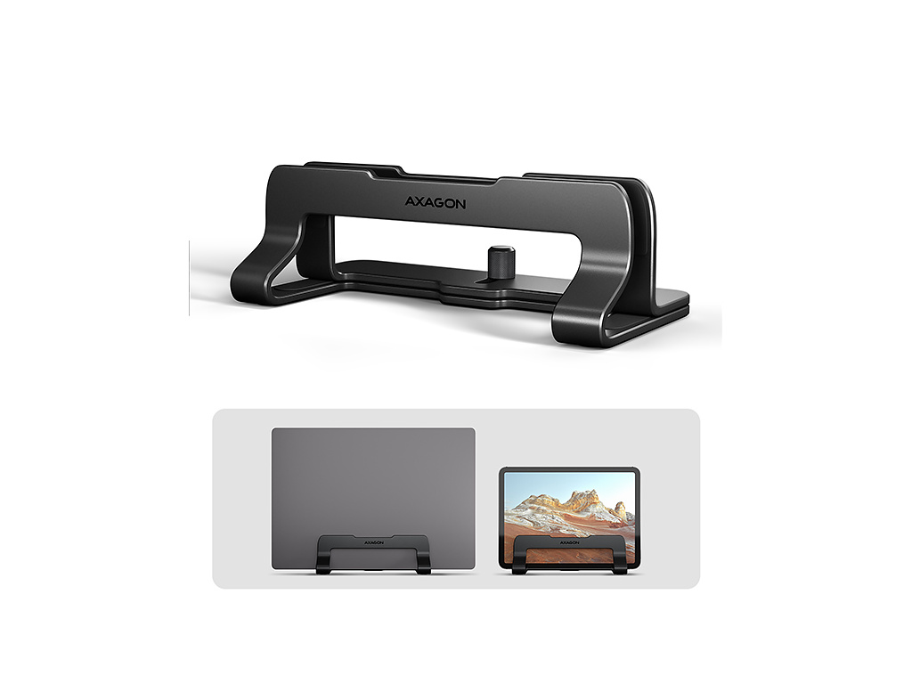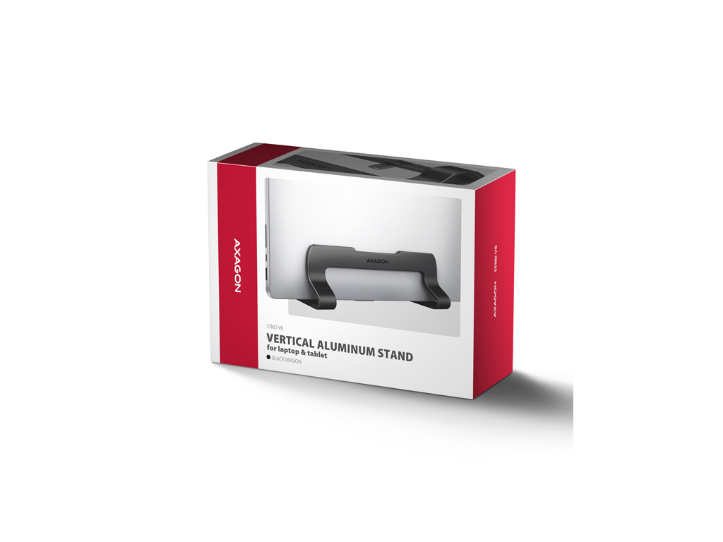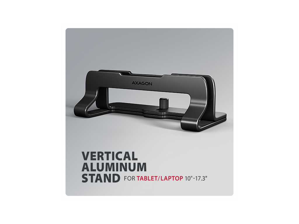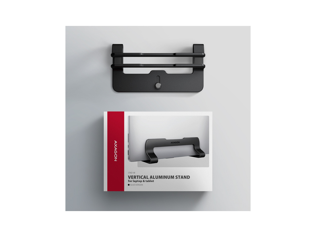 AXAGON STND-VB, vertikální hliníkový stojan pro notebooky 10''-17.3, nastavitelný rozestup, černý, STND-VB
