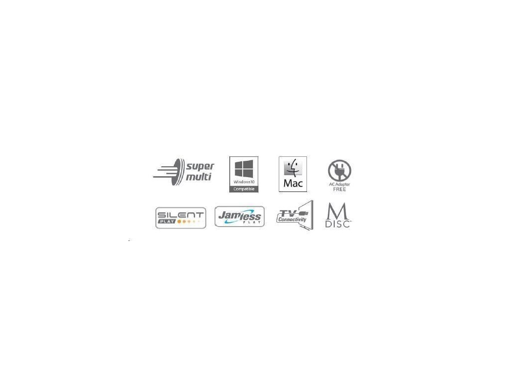Rychlost čtení: 8 x DVD+/-R, 8 x DVD+/-RW, 6 x DVD-RAM, 8 x M-Disc, 24 x CD