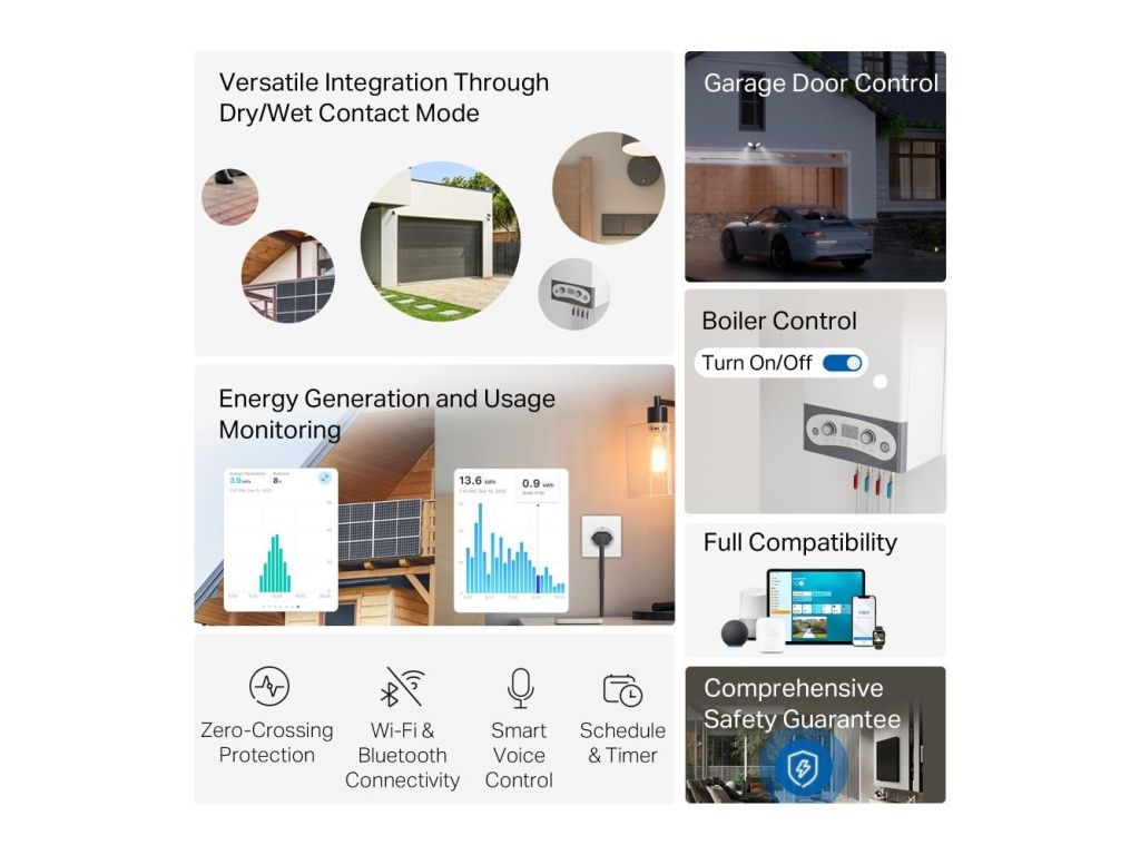 - Ovládání garážových vrat: Upgradujte svá garážová vrata pro chytré hlasové ovládání, dálkové ovládání a plynulou automatizaci, s možností nastavení jedinečného PIN kódu.