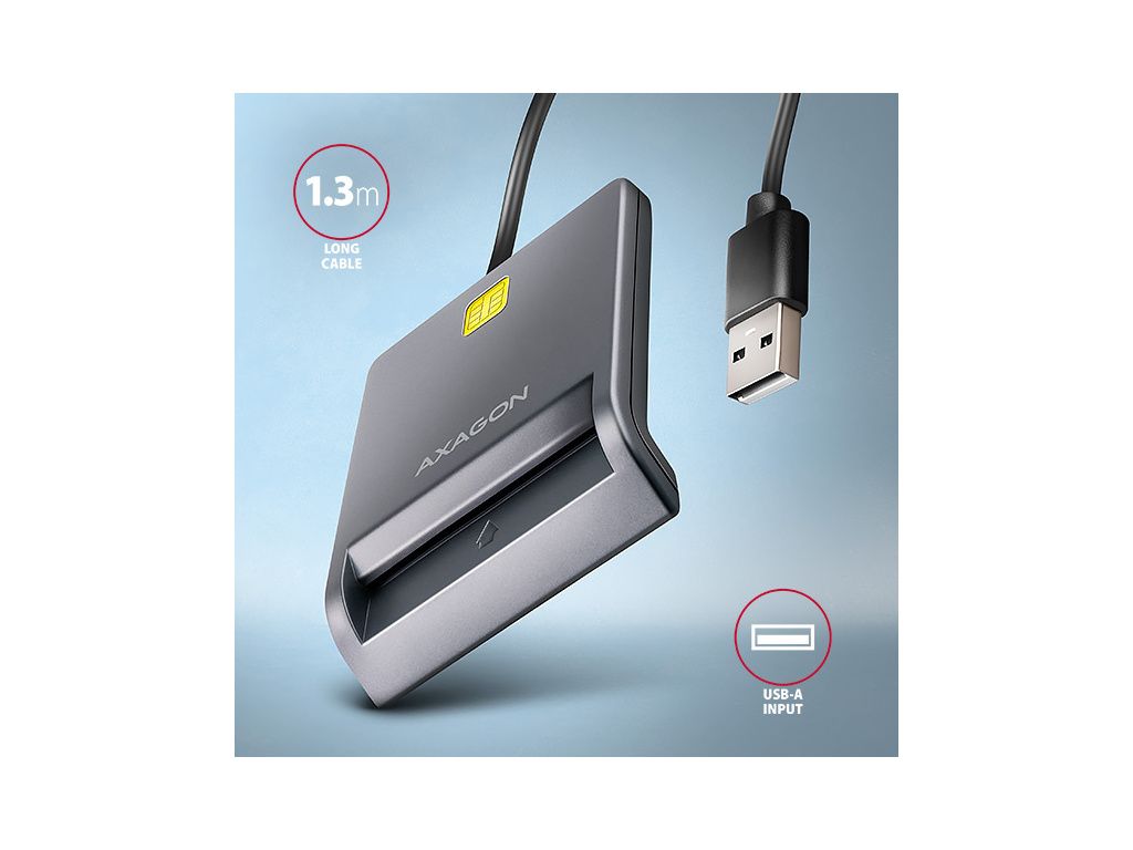 AXAGON CRE-SM3T, USB-A FlatReader čtečka kontaktních karet Smart card (eObčanka), kabel 1.3m, CRE-SM3T