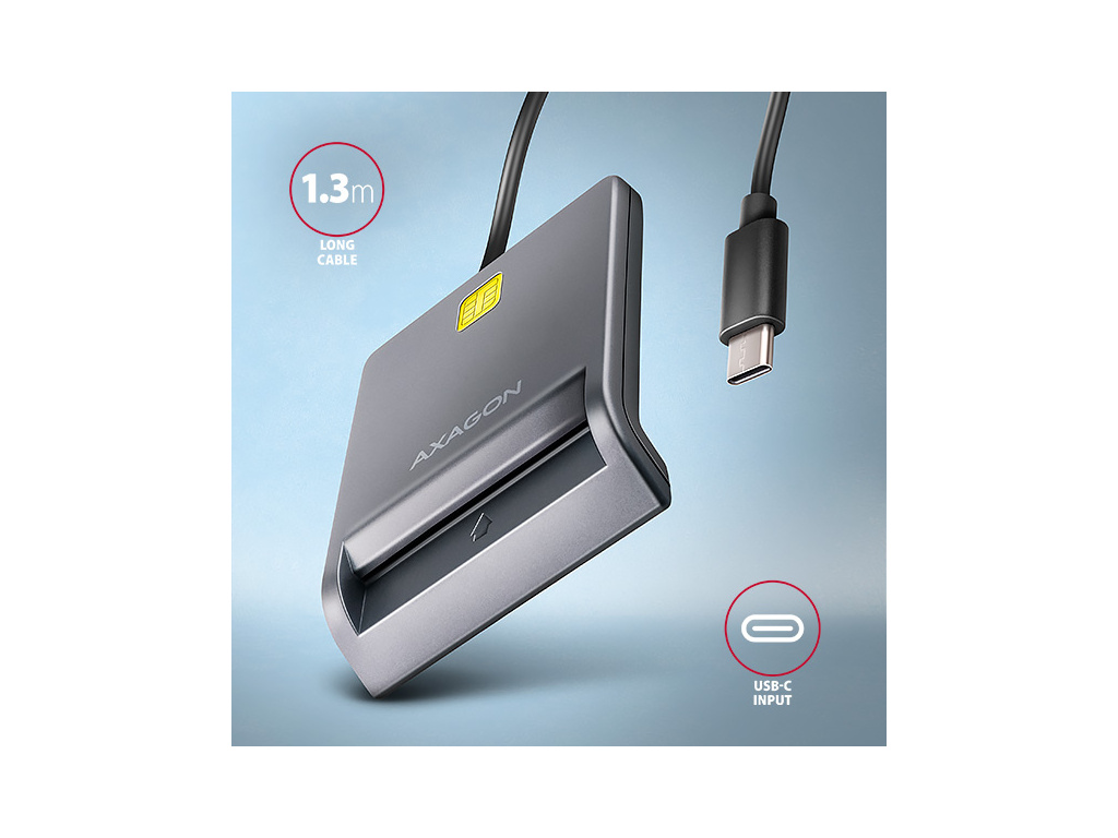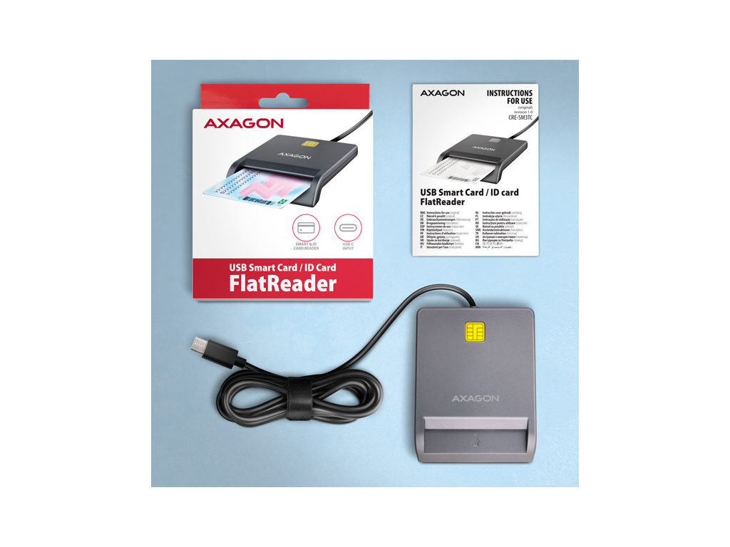 Kompaktní stolní čtečka Smart card / ID cardAXAGON CRE-SM3TC FlatReader s USB 480 Mbps rozhraním. Je vhodná zejména jako