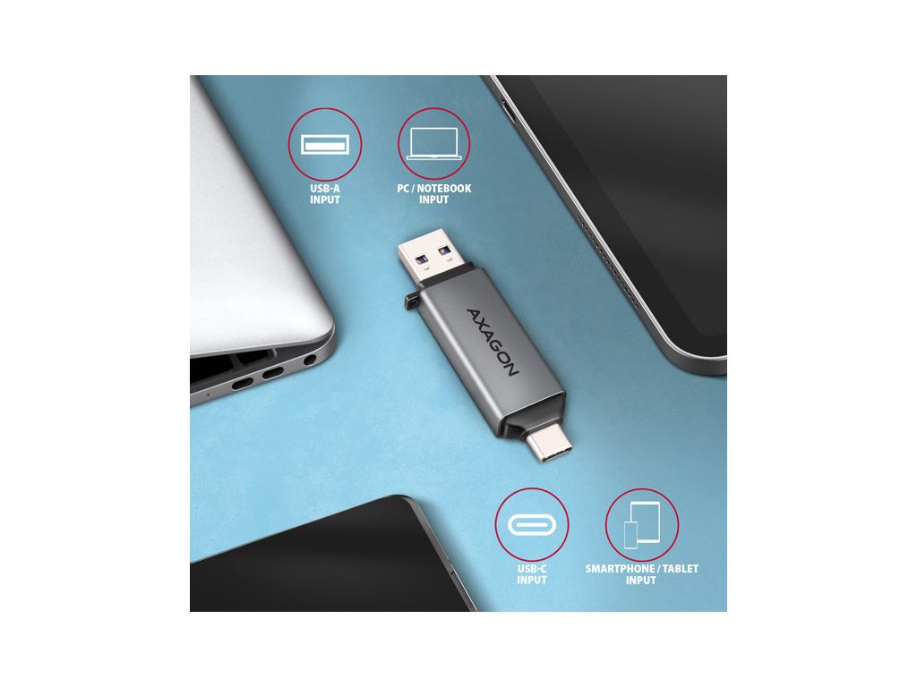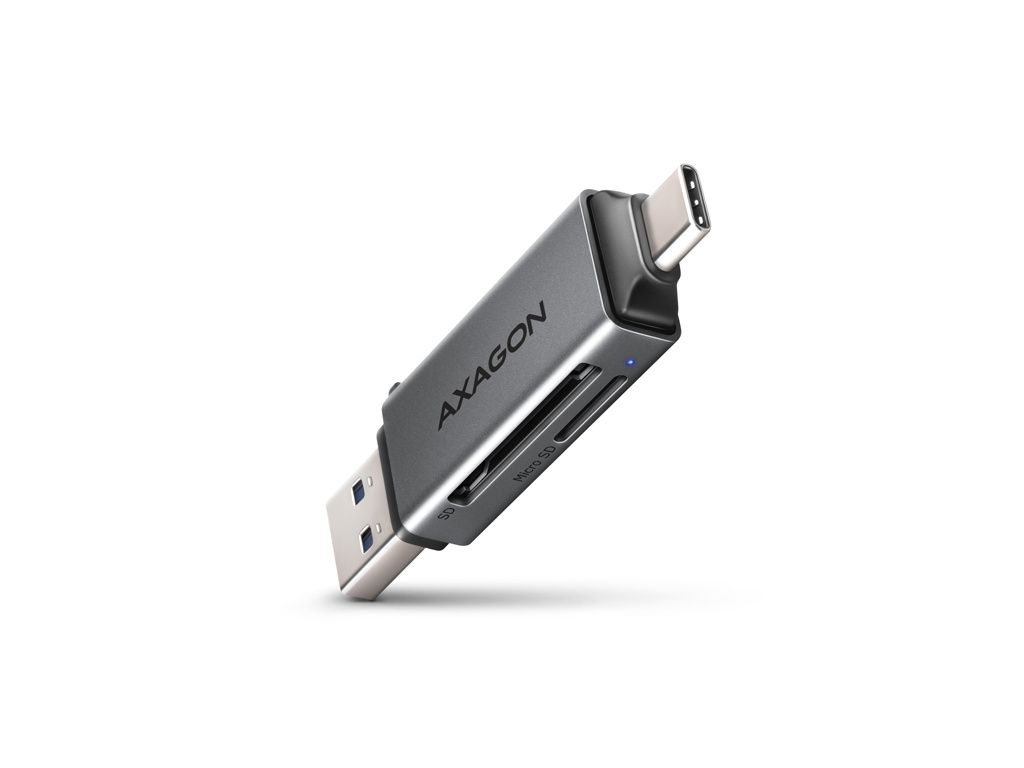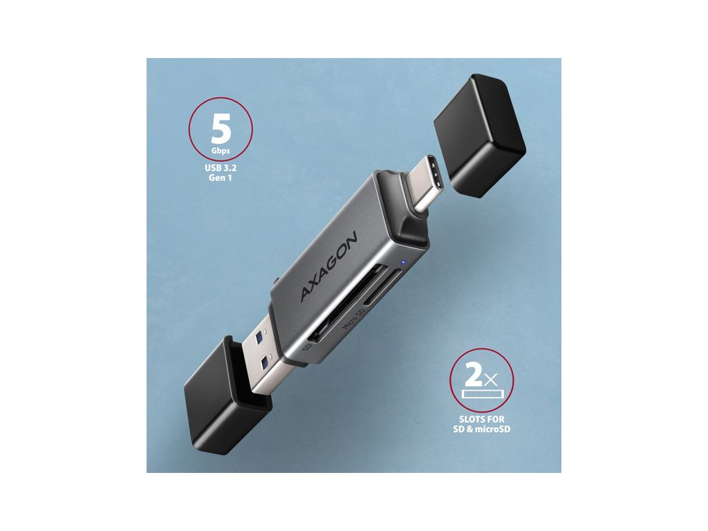 AXAGON CRE-DAC, USB-C + USB-A, 5 Gbps - MINI čtečka karet, 2-slot & lun SD/microSD, podpora UHS-I, CRE-DAC