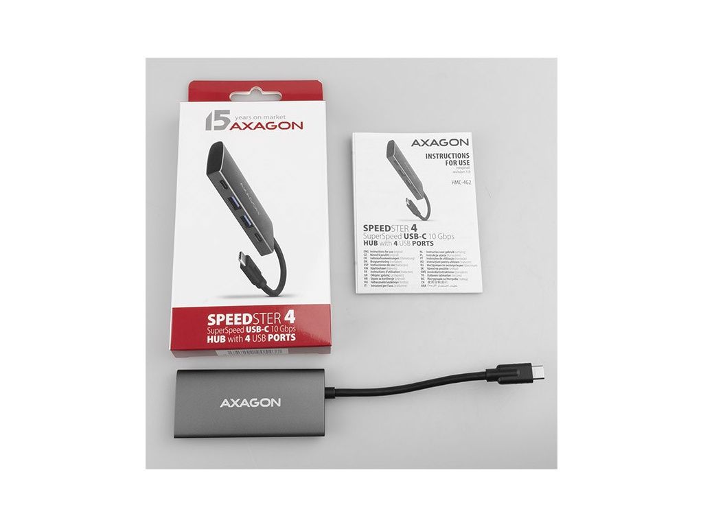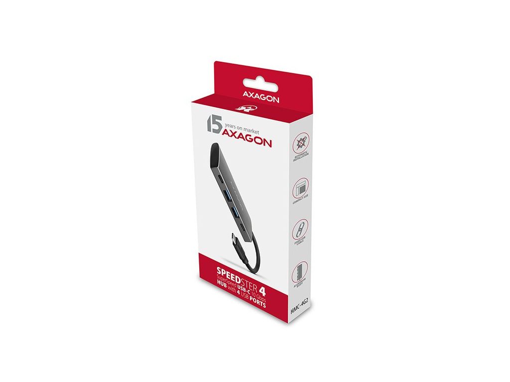 Vysokorychlostní USB-C 3.2 Gen 2 hub AXAGON HMC-4G2 SPEEDSTER 4 rozšíří Váš notebook, počítač nebo telefon o čtveřici portů. Přes oboustranný USB-C konektor snadno a rychle připojíte k počítači až čtyři USB zařízení současně.