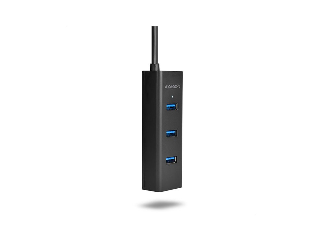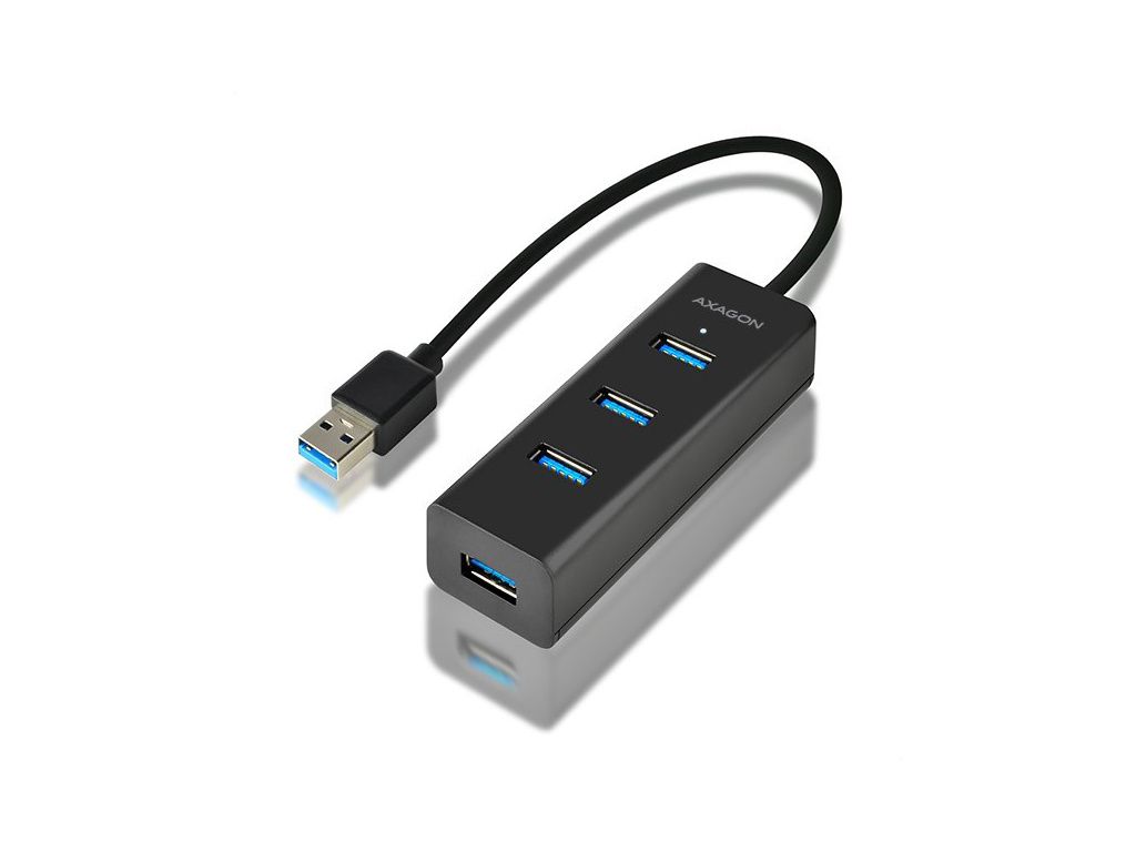 4-portový USB 3.0 hub AXAGON HUE-S2B s možností externího napájení a podporou rychlonabíjení na všech portech. Lehký malý rozbočovač s elegantním matným plastovým tělem připojí snadno a rychle k počítači až čtyři USB zařízení současně. Napevno uchycený USB kabel dostatečné délky 30 cm ideální pro použití s notebooky.