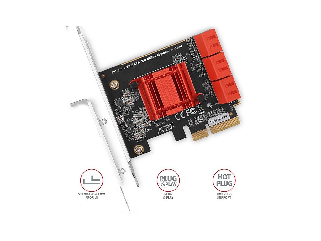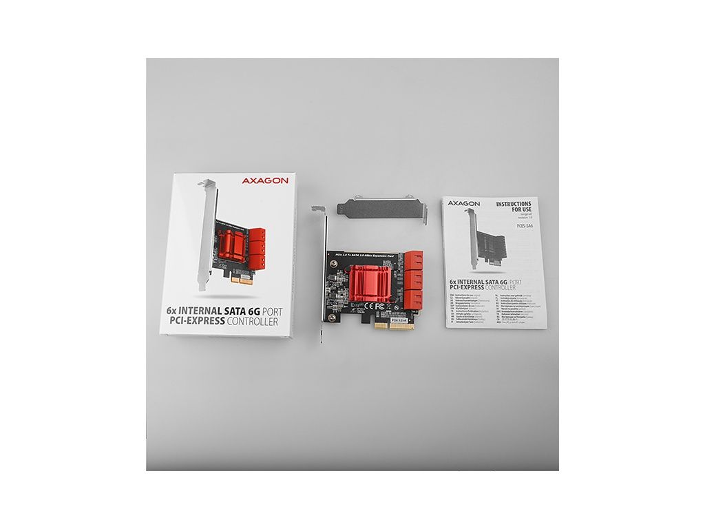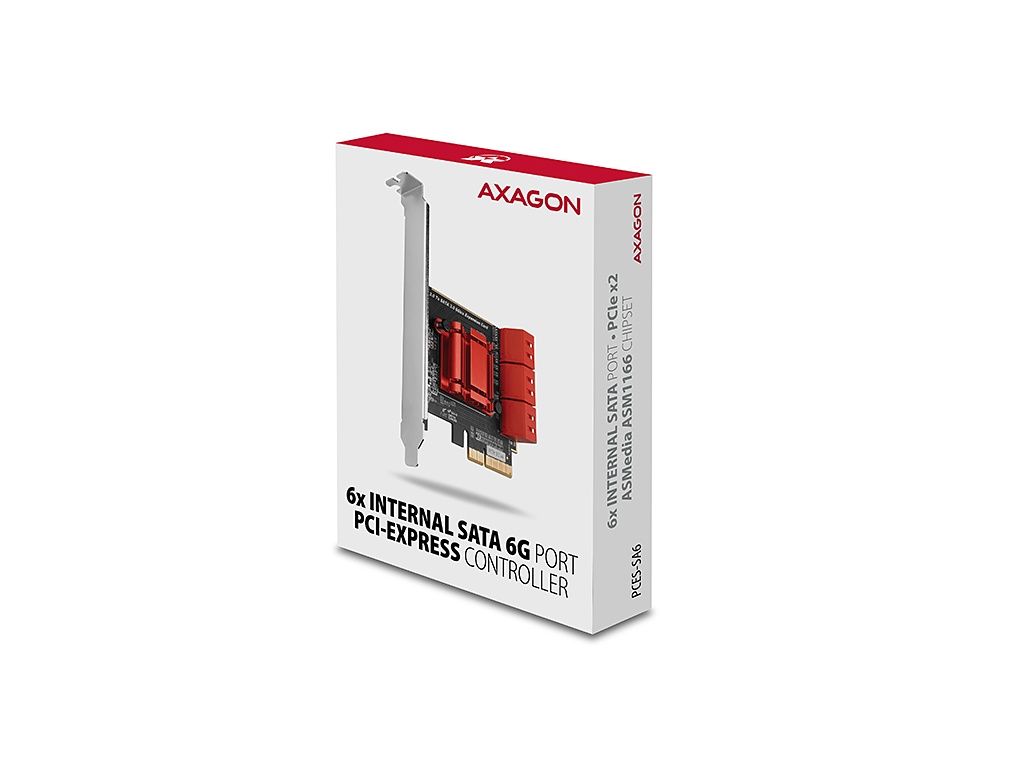 AXAGON PCES-SA6, PCIe řadič - 6x interní SATA 6G port, ASM1166, SP & LP, PCES-SA6
