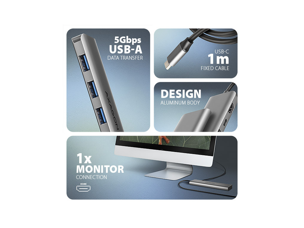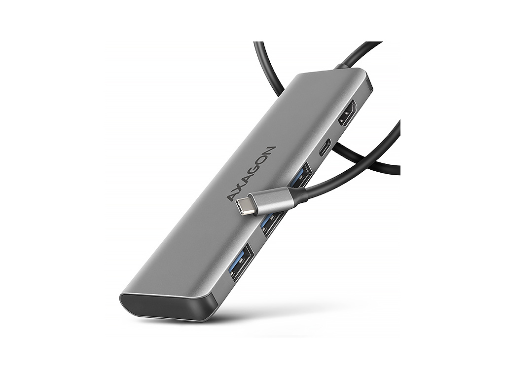 AXAGON HMC-5H, USB 5Gbps hub, 3x USB-A, HDMI 4k/30Hz, PD 100W, kabel USB-C 100cm, HMC-5H