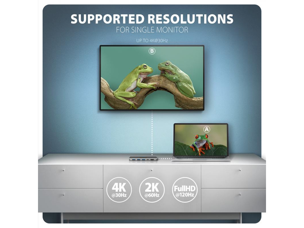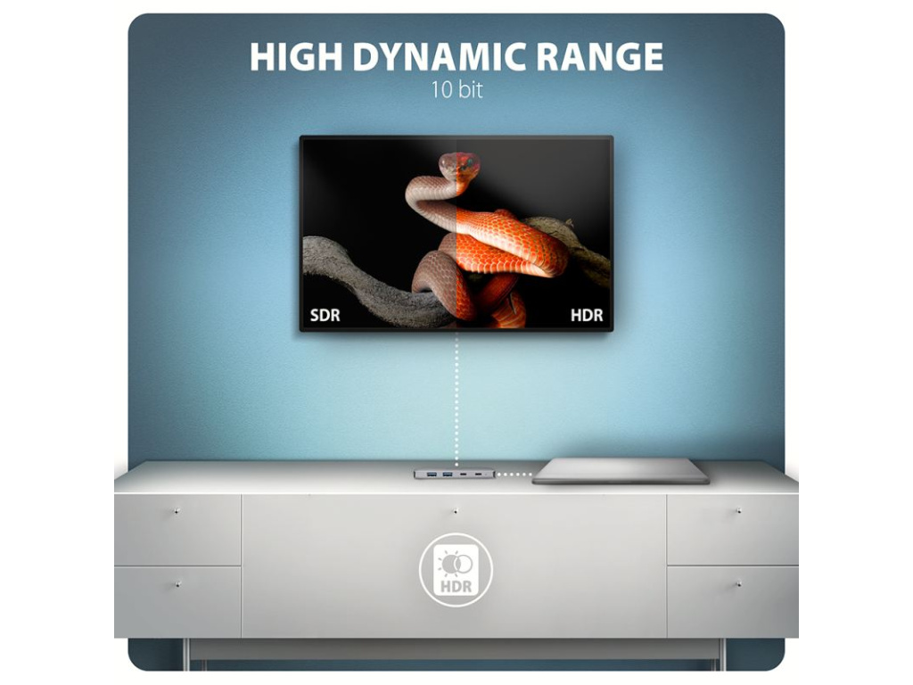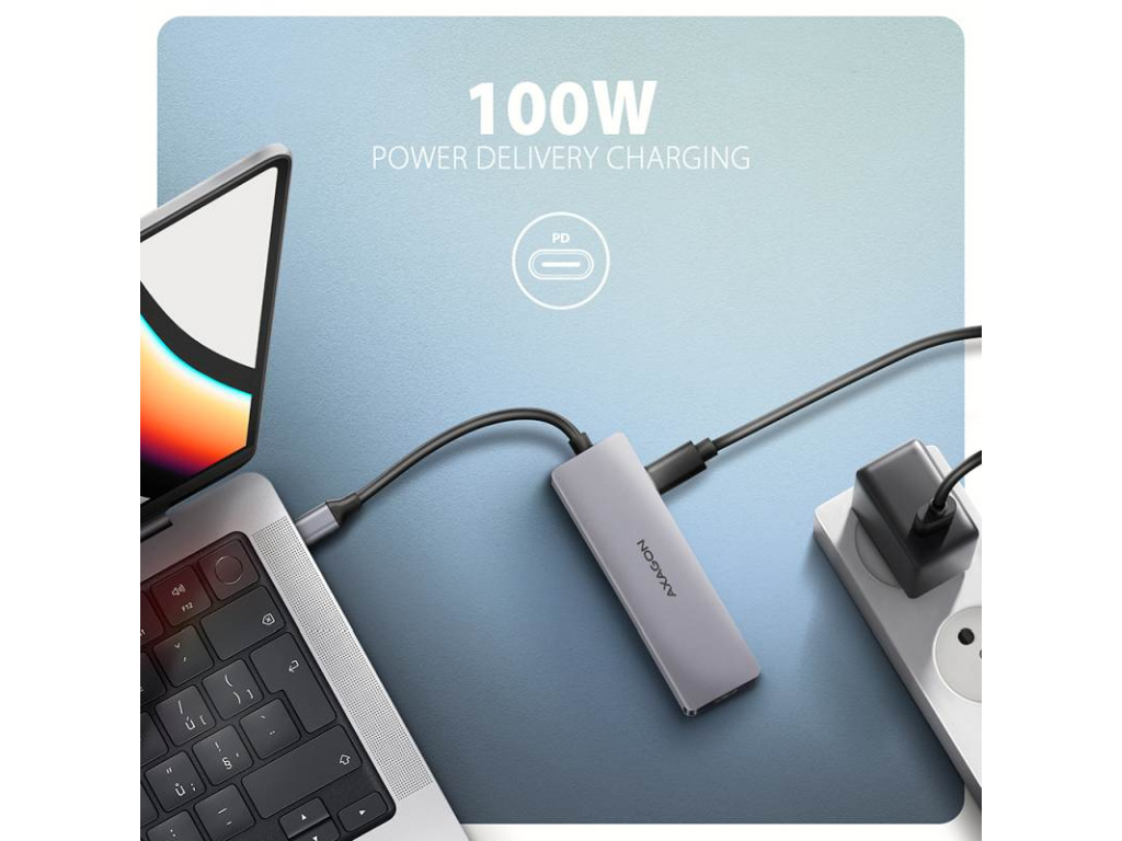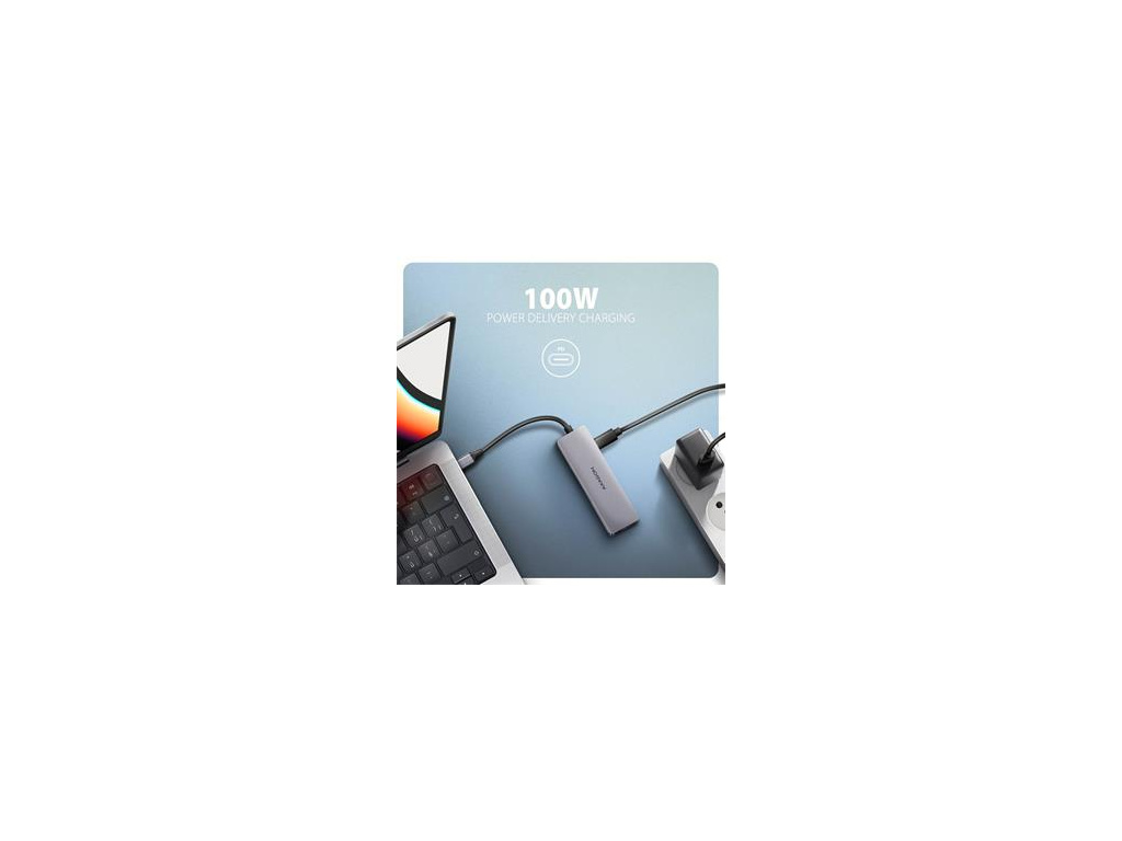Multiportový USB-C 5Gbps AXAGON HMC-5H60 5in1 hub rozšíří Váš notebook, počítač nebo telefon o pětici portů. Přes oboustranný USB-C konektor snadno a rychle připojíte k počítači monitor a tři USB zařízení současně. Zároveň získáte možnost napájení notebooku pomocí technologie Power Delivery. Replikátor portů vám tak poskytne jednoduchou a skladnou dokovací stanici 5v1 pro moderní notebooky. USB rozbočovač nabízí tři USB 5Gbps výstupy, dva se standardním USB-A a třetí s USB-C datovým konektorem. Díky rychlému USB 3.2 Gen 1 rozhraní je přenosová rychlost hubu až 5Gb/s. Hub zvládne trvalé připojení několika externích disků současně a také dovolí nabíjení telefonů a tabletů proudem až 1.5A/5V. Z hubu tak snadno nabijete např. Android smartphone, Apple iPhone, Apple iPad apod. Další z USB-C (PD) konektorů je vyhrazen pouze pro nabíjení telefonů nebo notebooků pomocí technologie Power Delivery 3.0 výkonem až 100W. Do hubu zapojíte vhodnou USB-C Power Delivery nabíječku a hub připojíte k notebooku s podporou Power Delivery. Tím také uvolníte jeden USB-C port. HDMI výstup poskytuje kvalitní obraz až do rozlišení 4K/60Hz Ultra HD a podporuje přenos vícekanálového zvuku. Podporovány jsou také vysoké frekvence v oblíbených hráčských rozlišeních 2K/120Hz nebo FullHD/240Hz. Díky podpoře HDR (vysoký dynamický rozsah) si můžete bez omezení vychutnat výrazně rozšířený rozsah barev a kontrastů. Pro správné fungování video výstupu je nutné, aby notebook měl USB-C port s podporou DisplayPort Alternate Mode (DP Alt Mode) nebo port Thunderbolt 3, 4 a výše. Kompaktní a štíhlé hliníkové tělo nejen skvěle vypadá, ale zajistí i mechanickou odolnost a pasivní chlazení. Potěší také jemně strukturovaný povrch, na kterém nezůstávají otisky prstů. USB-C hub je ideálním doplňkem pro notebooky bez USB-A konektorů a video výstupu. Lze tak využít Vaše stávající USB periferie bez nutnosti pořizování nových. Díky funkcím Plug and Play a Hot Plug je samotné zapojení hubu velmi jednoduché bez složité instalace, a také lze jednoduše připojovat a odpojovat periferie za běhu počítače. Rozbočovač se nezalekne ani připojení k telefonům s USB-C konektorem. K telefonu tak připojíte například flash disk, klávesnici, myš, monitor, TV nebo projektor. Vstup (připojení k notebooku): • USB 5Gbps (USB 3.2 Gen 1 / USB 3.0), konektor USB-C male. • Kompatibilní s USB 3.2 Gen 2, USB4 a Thunderbolt 3/4. Vstup (napájení): • USB Power Delivery 3.0 - 100W port, konektor USB-C female. • Napájení notebooku ze síťového adaptéru přes USB-C hub. • Napájení PD musí podporovat jak notebook (telefon), tak síťová nabíječka. Výstupy USB: • 2x USB 5Gbps port, konektor USB-A female. • 1x USB 5Gbps port, konektor USB-C female. • USB-C hub zvládne připojení několika externích disků současně. • Nabíjení mobilních zařízení (včetně iPad) proudem až 1.5A/5V z USB-A a USB-C portů hubu. Video výstup: • 1x HDMI port, konektor HDMI A female. • 4K rozlišení 4096 x 2160 při až 60Hz. • 2K / WQHD rozlišení 2560 x 1440 při až 120Hz. • FHD rozlišení 1920 x 1080 při až 240Hz. • Podpora výše uvedených max. rozlišení a frekvencí vyžaduje připojení k počítači s DisplayPort verze 1.4. • Pro funkci video výstupu je nutné hub zapojit do USB-C portu s podporou DisplayPort Alternate Mode (DP Alt Mode) nebo do USB-C portu s podporou Thunderbolt 3/4. Dále je nutný vhodný OS. Bez této podpory nebude funkce video výstupu dostupná. • Podpora HDR (High dynamic range, 10 bit support) - realistická reprodukce světlých a tmavých detailů. • Podpora HPD (Hot-Plug-Detect). • Podpora TMDS (Transition Minimized Differential Signaling). • Plná podpora HDCP 1.4 a 2.2 (High-bandwidth Digital Content Protection). • Podpora až 2kanálového LPCM zvuku. • Podpora 2kanálového zvuku vzorkovací frekvence až 192 kHz a až 24bitového zvuku – závisí na zdrojovém a koncovém zařízení, tj. notebooku/telefonu a TV/monitoru/AV receiveru. Další vlastnosti: • Možnost připojení zařízení za chodu díky podpoře Hot Plug. • Plná podpora Plug and Play. • Podpora úsporného režimu. • Napájení přes USB sběrnici - USB bus power nebo z PD nabíječky. • Odolné hliníkové tělo pro lepší chlazení hubu. • LED indikuje trvalým svitem připojení hubu k počítači. • Kvalitní stíněný kabel zaručuje vysokou rychlost komunikace a minimální nežádoucí interference. • Rozměry 110 x 32 x 11 mm. • Hmotnost 52 g (vč. kabelu). • Délka USB kabelu 15 cm. Podporované operační systémy: • Microsoft Windows 10 / 11, macOS, iPadOS, iOS, Linux, Chrome OS a Android. • Kompatibilita je závislá na používaném operačním systému a podpoře od výrobce zařízení. • DisplayPort Alternate Mode (DP Alt Mode) je podporovaný pouze v aktualizovaných operačních systémech a dále závisí na podpoře ze strany zařízení (notebooku, telefonu). • Na správnou funkci produktu mohou mít také vliv ovladače grafické karty. Doporučujeme stáhnout nejnovější verzi ovladačů. Balení obsahuje: • USB-C hub s kabelem napevno délky 15 cm, • vícejazyčný návod CZ / DE / DK / ENG / ESP / FIN / FR / GR / HR / HU / IT / NL / PL / PT / RO / SK / SWE / TR / UA / BG / CN / ARA. • baleno v kartonové krabičce s otvorem pro zavěšení. Vstup rozhraní USB-C (DisplayPort Alternate Mode) rozhraní USB 3.2 Gen 1 konektor USB type C samec (na kabelu) kabel 15 cm Výstup rozhraní USB 3.2 Gen 1 rozhraní HDMI výstupní výkon 100W - 20V/5A konektor Power Delivery 3.0 konektor USB-A 2x konektor HDMI A Podporované vlastnosti max. rozlišení 4096 x 2160 @60Hz 4K x 2K přenos zvuku ano Plug and Play ano Hot Plug ano Další vlastnosti provedení hliník rozm