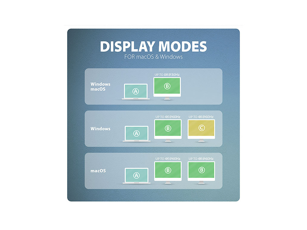 Podporované operační systémy: • Windows 10/11, macOS, Linux, iPadOS, iOS, Chrome OS a Android. • Kompatibilita je závislá na používaném operačním systému a podpoře od výrobce zařízení. • DisplayPort Alternate Mode (DP Alt Mode) je podporovaný pouze v aktualizovaných operačních systémech a dále závisí na podpoře ze strany zařízení (notebooku, tabletu, telefonu). • Na správnou funkci produktu mohou mít také vliv ovladače grafické karty. Doporučujeme stáhnout nejnovější verzi ovladačů.