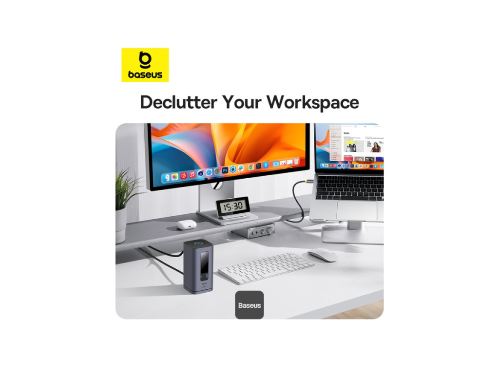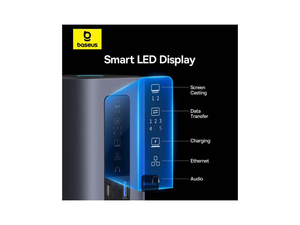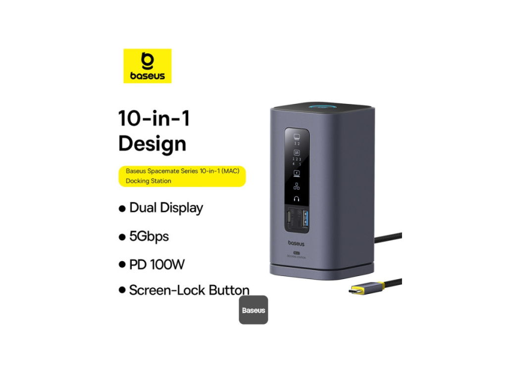 Dokovací stanice MAC Baseus Spacemate Series 10-in-1 – 2 HDMI 4K60Hz/30Hz + 2 USB-A & USB-C 5Gbps + RJ45 + 2 USB-A 480Mbps + USB-C + 1 3,5mm - šedá