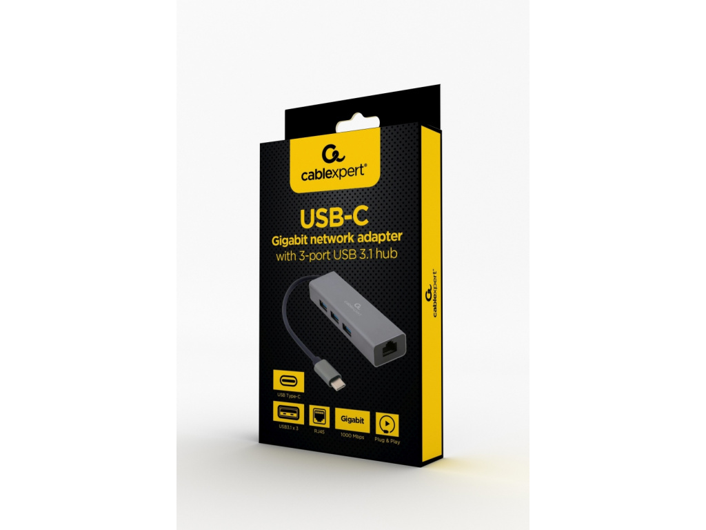 Gembird USB-C GBit adapter + 3x USB 3.1, A-CMU3-LAN-01