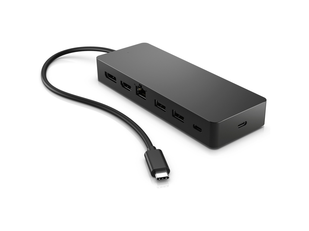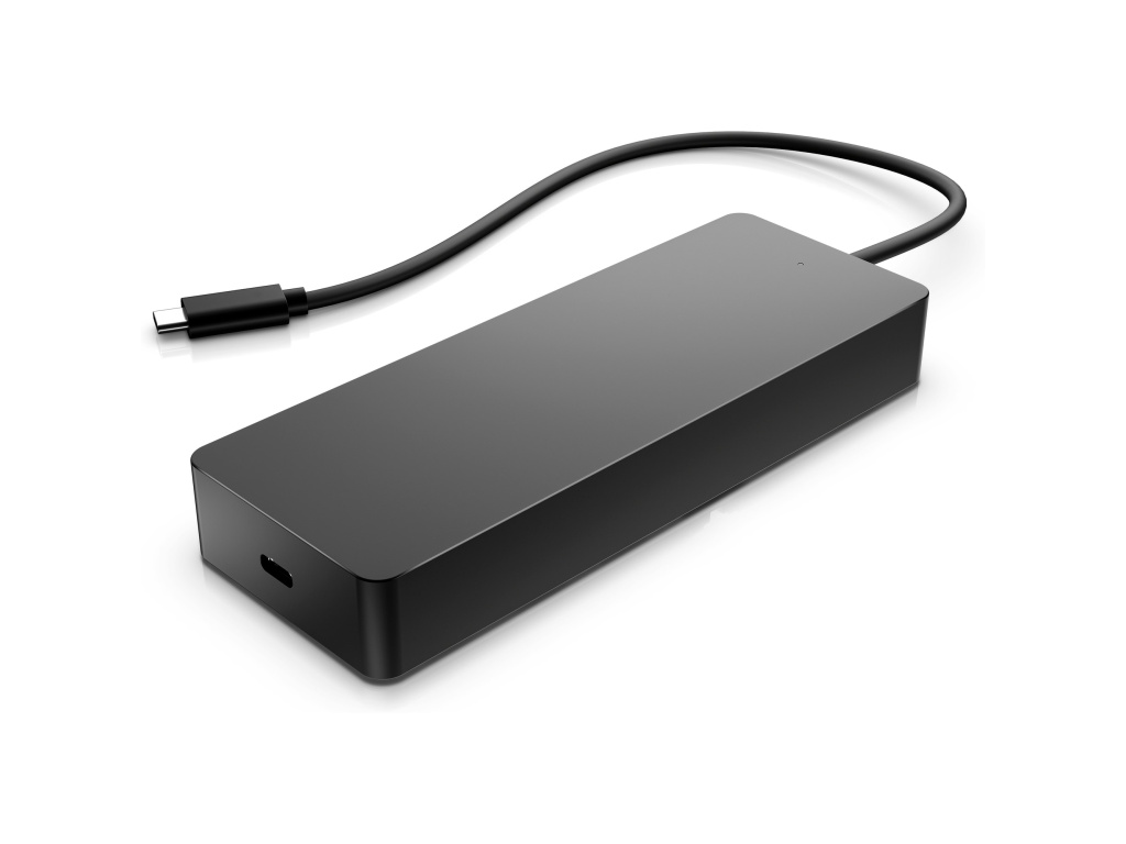 univerzální víceportový rozbočovač HP USB-C Odhalte nové možnosti s univerzálním víceportovým rozbočovačem HP USB-C, který nyní podporuje jakýkoli počítač kompatibilní s rozhraním USB-C®. 7 portů, 1 napájecí a datový průchozí kabel a mnoho periferií, které můžete připojit a používat podle svých představ. Navíc podporuje dva displeje 4K přes HDMI 2.0 a DisplayPort™ 1.2. Tento rozbočovač je vše, co potřebujete k připojení.
