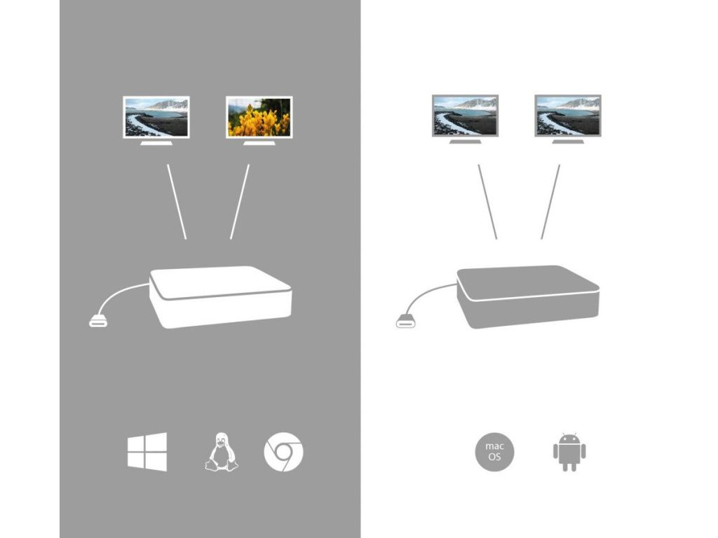 Pokud pracujete s operačním systémem macOS, budete moci pracovat s maximálně jedním externím displejem (resp. v případě připojení ke dvěma monitorům bude na obou promítnut stejný obraz).