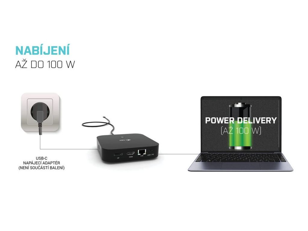 I-TEC USB-C HDMI DP Dock 100 WDokovací stanice podporující připojení dvou 4K monitorů. K počítači či notebooku se připojuje pomocí USB-C portu s podporou Thunderbolt 3 a je tak schopná na podporovaných zařízeních přenášet i napájení až 100 W. Vysokorychlostní přístup k internetu lze realizovat skrze přítomný RJ-45 port. Pro připojení periférií jsou přítomny tři USB 3.0 porty, dva USB 2.0 porty a dva porty USB-C. Pro připojení sluchátek či mikrofonu pak slouží kombinovaný 3,5 mm konektor. Potěší také slot pro bezpečnostní zámek nebo přepínač pro zapnutí a vypnutí stanice.