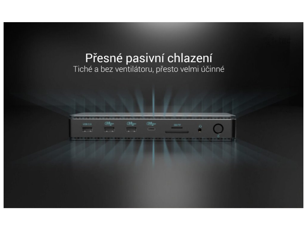 Dostatek portů vám umožní nabíjet několik zařízení současně. O síťové funkce a super rychlý internet se pak stará rozhraní LAN Ethernet s maximální rychlostí až 2500 Mb/s. Nechybí ani slot pro paměťové karty. Díky pasivnímu chlazení je zajištěn tichý a stabilní chod i bez přítomnosti ventilátoru.