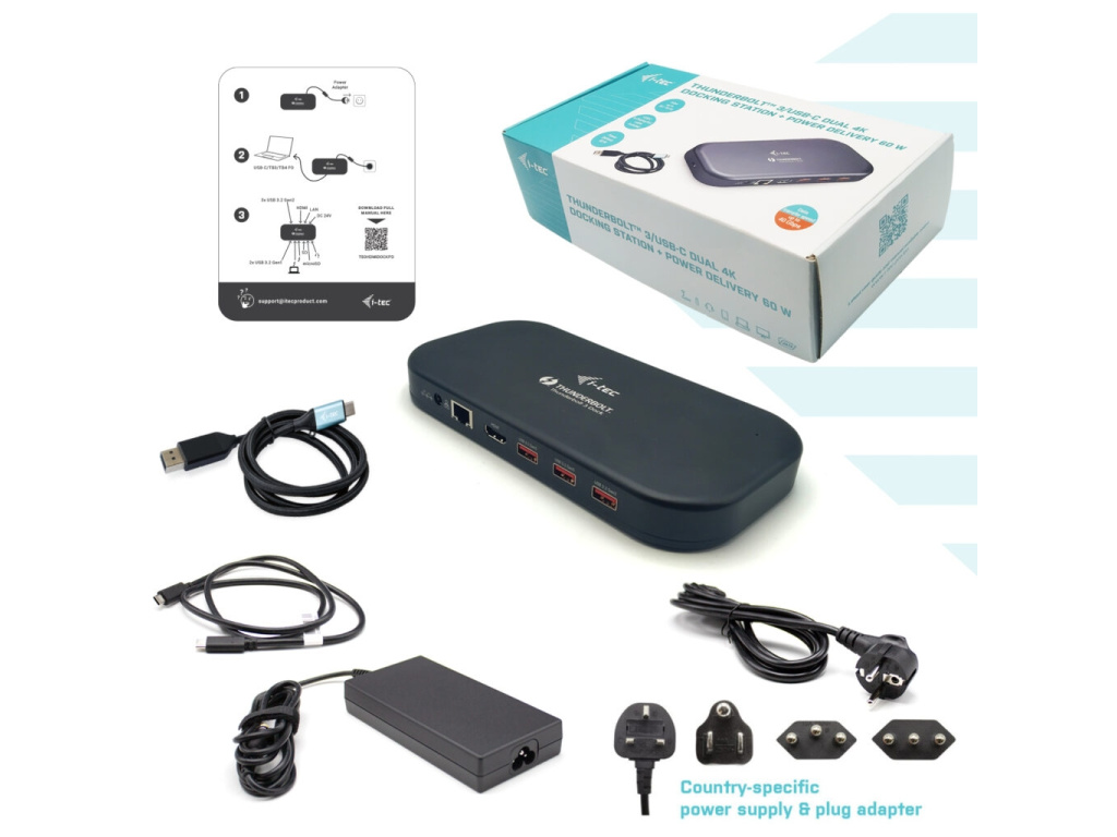 i-tec Thunderbolt 3 Dual 4K Docking Station, Power Delivery 60W + videoadaptér USB-C/DP (1.5m), TB3HDMIDOCKPD
