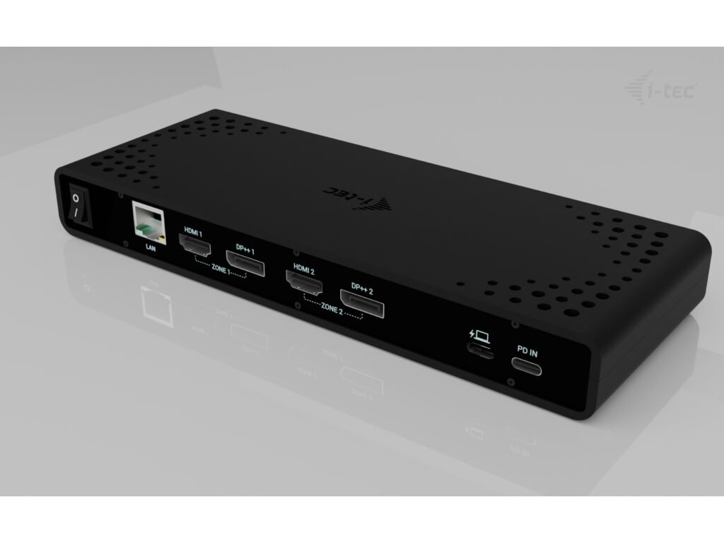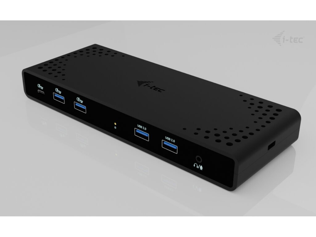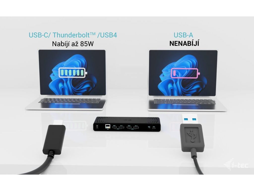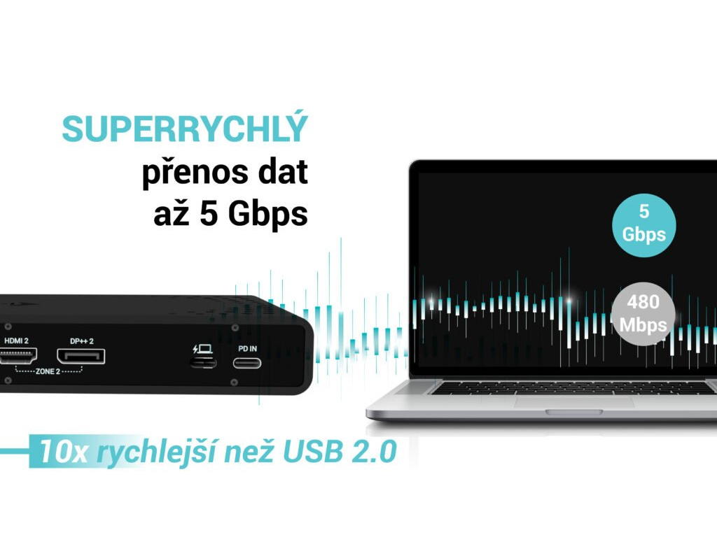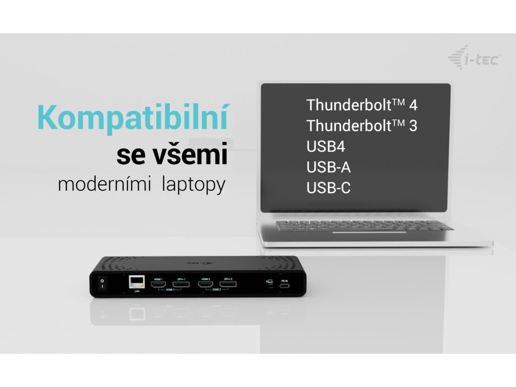 • Univerzální dokovací stanice kompatibilní s notebooky a tablety s rozhraním USB-C, USB-A, USB4 a Thunderbolt. • 2x DisplayPort a 2x HDMI podporující až dva displeje 4K/60Hz (platí i pro platformu Apple M1/M2/M3) nebo jeden displej 5K/60Hz. • 5x port USB včetně 1x USB-C 3.1 (5 Gbps, s podporou rychlého nabíjení BC 1.2) a 2x USB-A 3.1 (5 Gbps, s podporou rychlého nabíjení BC 1.2), což usnadňuje připojení více USB zařízení a periferií pro rychlý přenos dat. • Dokovací stanici je možné provozovat i bez USB-C nabíječky, a to i v případě připojení k notebooku přes USB-A konektor • Poskytuje až 85W Power Delivery pro kompatibilní notebooky a tablety s rozhraním USB-C, USB4 a Thunderbolt. • GLAN Ethernet podporuje síťové rychlosti 10/100/1000 Mbps, čímž poskytuje robustní a vysokorychlostní připojení k internetu. • Samostatné 3,5mm audio vstupní a výstupní konektory pro snadné připojení náhlavní soupravy nebo reproduktorů. • Možnost instalace držáku VESA, který vám pomůže udržet pořádek na stole a zbavit se kabelů, a slot K-lock pro větší bezpečnost. Poznámka: USB-C nabíječka není součástí dodávky. Dokovací stanici lze používat bez nabíječky, nebo s nabíječkou dodanou např. s vaším notebookem, případně lze nabíječku zakoupit samostatně, například i-tec CHARGER-C100W. Alternativně můžete zakoupit produktovou sadu CADUA4KDOCKPDB100, který již obsahuje napájecí zdroj. Výkonná, přitom cenově dostupná dokovací stanice, která podporuje výstup až na dva externí monitory ve vysokém rozlišení, a to až 4K/60 Hz. Dokovací stanici lze použít prakticky se všemi notebooky, protože podporuje připojení ke všem běžným portům: 3.0, USB-C, USB4 a Thunderbolt“ 3/4 a zároveň podporuje všechny běžné současné operační systémy. Dostatek portů, spolehlivé a rychlé připojení k firemní síti díky integrovanému portu LAN a podpora instalace za monitor, to vše dělá z této dokovací stanice ideálního společníka pro opravdové profesionály. Dokovací stanici lze používat při pouhém připojení k notebooku (bez připojení USB-C nabíječky), případně za použití USB-C nabíječky (není součástí balení). V takovém případě podporuje nabíjení notebooku nebo tabletu, a to až do výkonu 85 W. • Připojení 2 externích monitorů v rozlišení až 4K/60Hz • Power Delivery: až 85W (v případě použití USB-C nabíječky o výkonu 100W, není součástí balení) • K dispozici 2 porty DisplayPort a 2 porty HDMI • 2x USB 3.1 Gen 1 (5 Gb/s), 2x USB 2.0 a 1x USB-C Gen 1 (5 Gb/s) umožňují snadné připojení vašich USB zařízení a periferií • Gigabitový Ethernet RJ-45 poskytuje spolehlivé, robustní a vysokorychlostní připojení k internetu s podporou rychlostí 10/100/1000 Mb/s • Kombinovaný konektor pro zvuk a mikrofon • Zámek Kensington poskytuje ochranu proti krádeži, zejména ve sdíleném kancelářském prostředí nebo na veřejných místech • Vypínač napájení dokovací stanice umožňuje maximální úsporu energie • Dokovací stanice podporuje držák VESA pro inteligentní vertikální instalaci za monitor s podporou VESA • Podporuje systémy Windows 10 / 11, macOS, Android 5 nebo novější, Chrome OS R51 nebo novější, Linux Ubuntu Pokud je dokovací stanice připojena přes port USB 3.0, nabíjení není podporováno.Specifikace • 1x USB-C port pro připojení k zařízení s USB-C nebo USB-A rozhraním (propojovací kabel USB-C a adaptér USB-C na USB-A jsou součástí balení) • Technologie dokovací stanice: DisplayLink + USB-C PD • Power Delivery: 85W