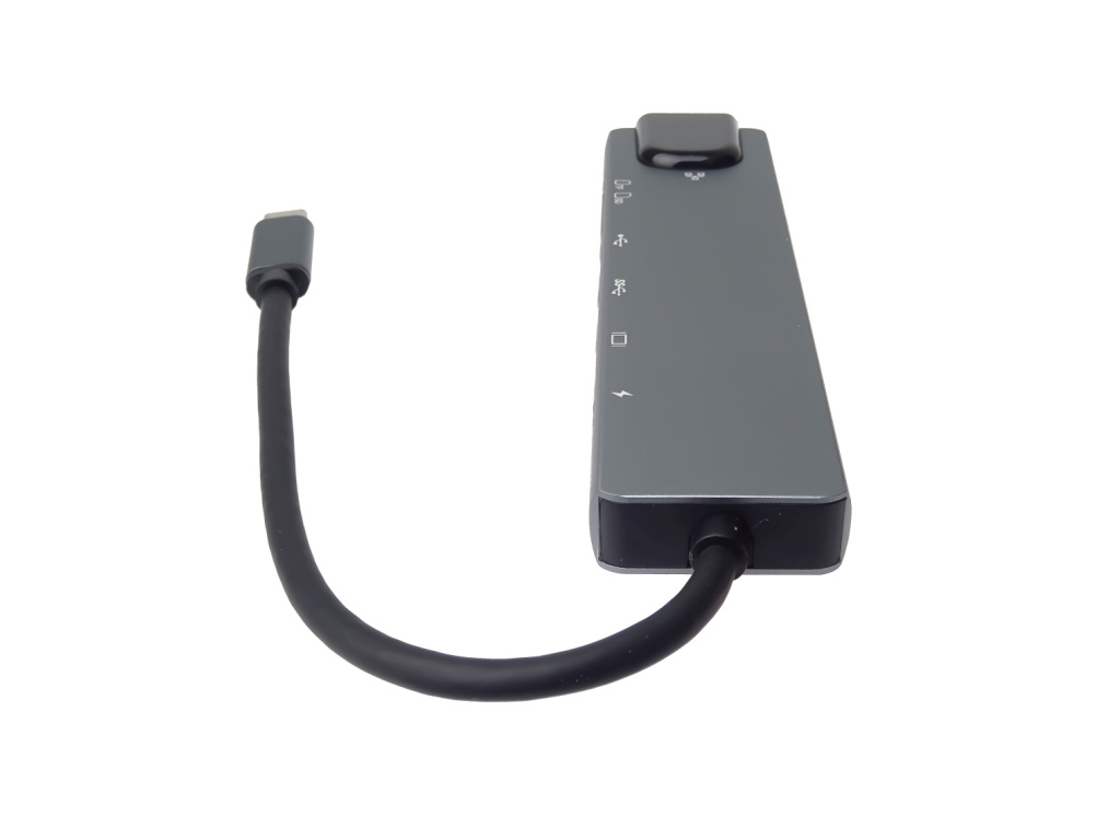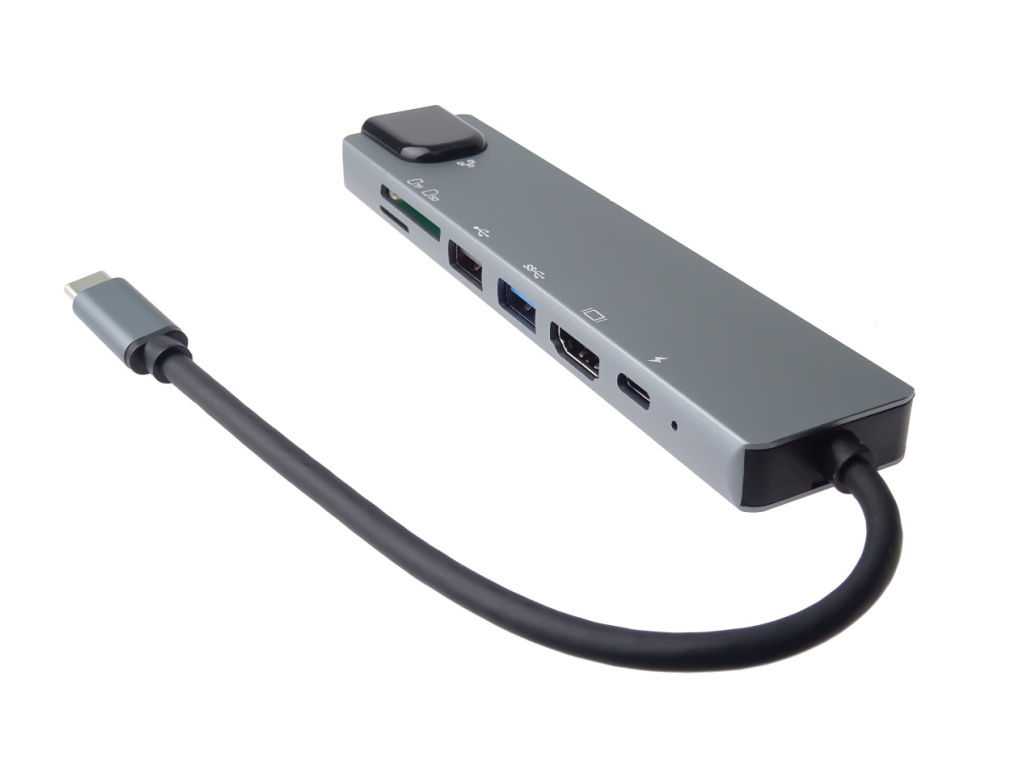 Výstupní konektor: HDMI female + USB3.0 female + USB2.0 female + PD (power delivery) + čtečka karet SD/TF + RJ45 konektor na ethernet 10/100Mbps