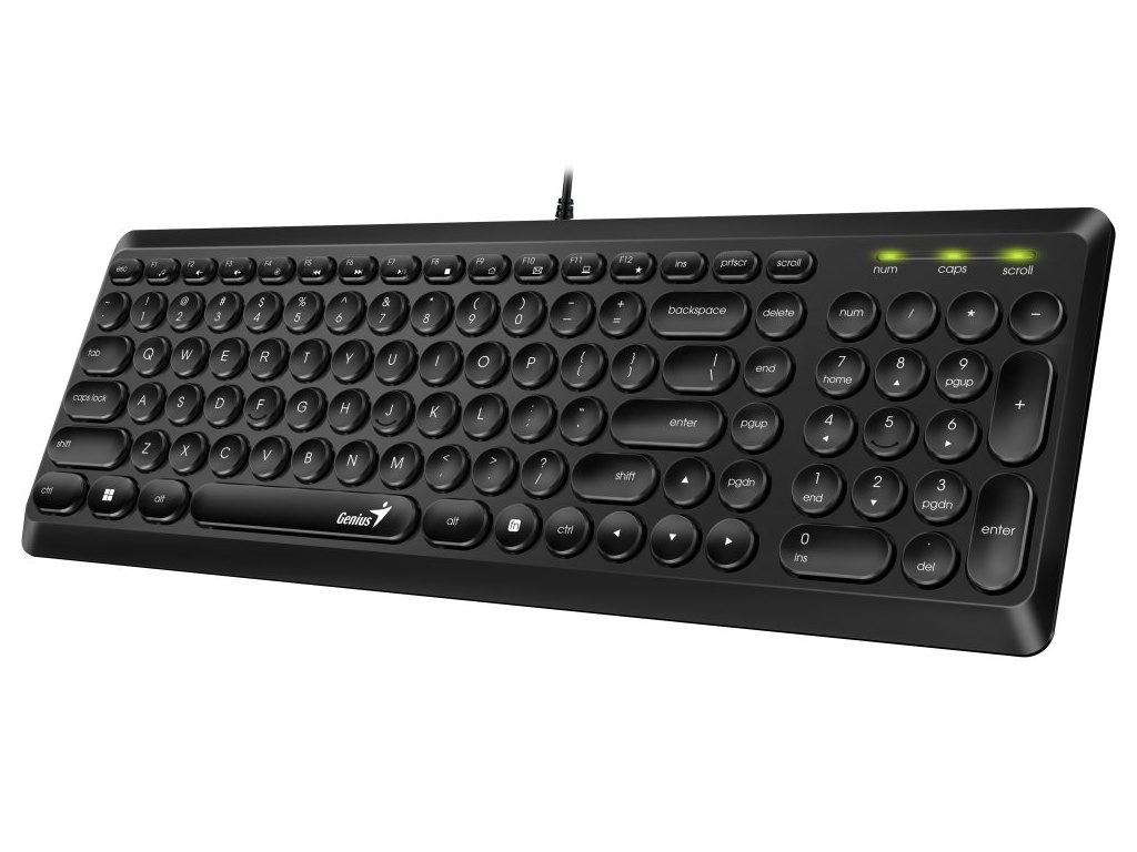 Drátová klávesnice v retro provedení s kulatými tlačítky je navržena tak, aby uživateli poskytla maximální komfort při každodenní práci. Tiché, nízkoprofilové klávesy poskytují efektivní a pohodlné psaní. Připojení k počítači je realizováno skrze USB port.