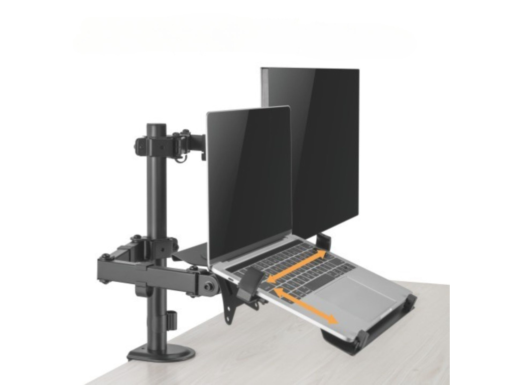 Držák monitoru Brateck LDT66-C024ML jedno kloubové rameno + jeden držák laptopu vedle sebe na tyčové, BRLDT66C024ML