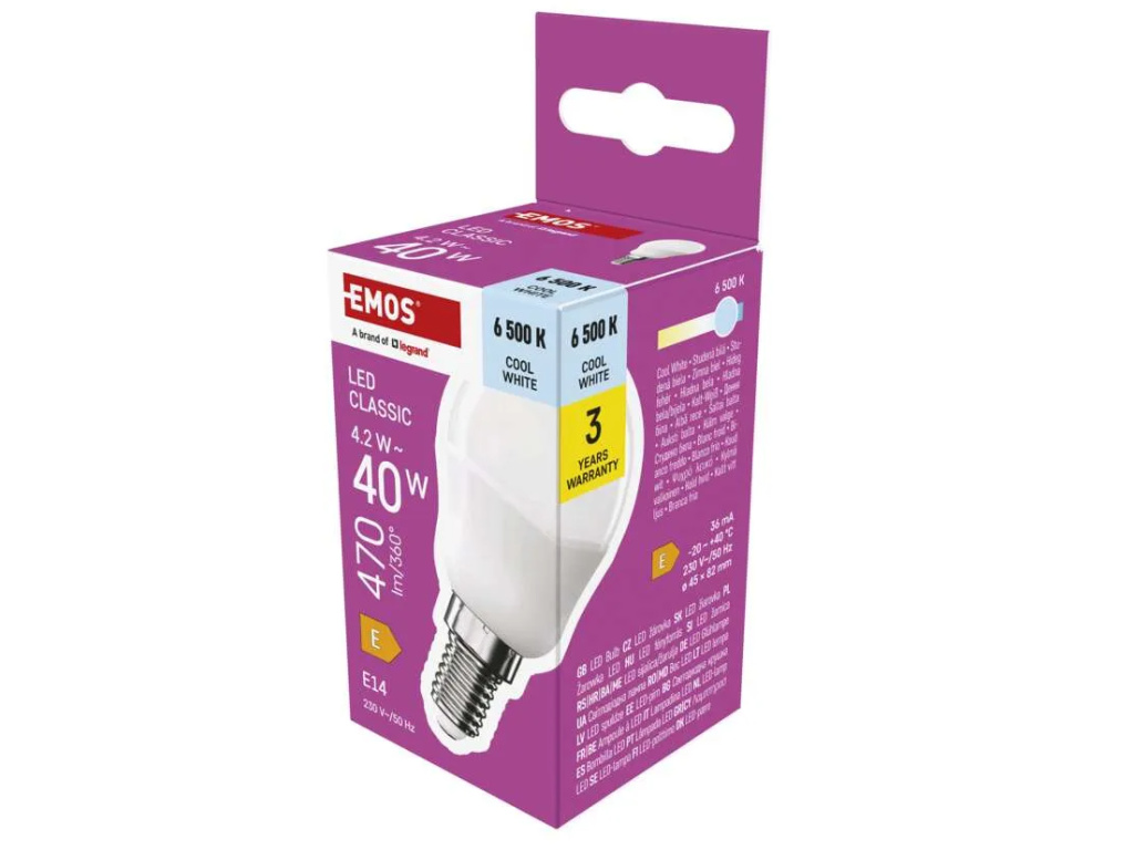 LED žárovka Classic Mini Globe / E14 / 4,2 W (40 W) / 470 lm / studená bílá
