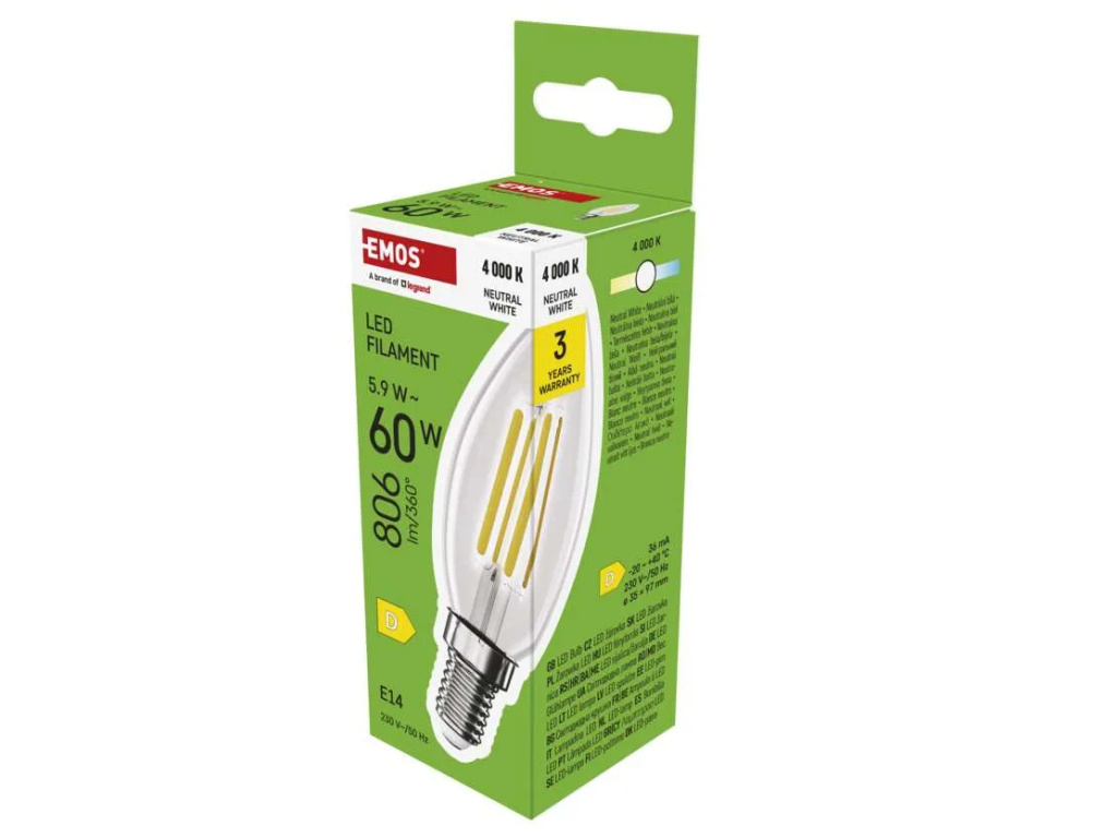 LED žárovka Filament svíčka / E14 / 5,9 W (60 W) / 806 lm / neutrální bílá