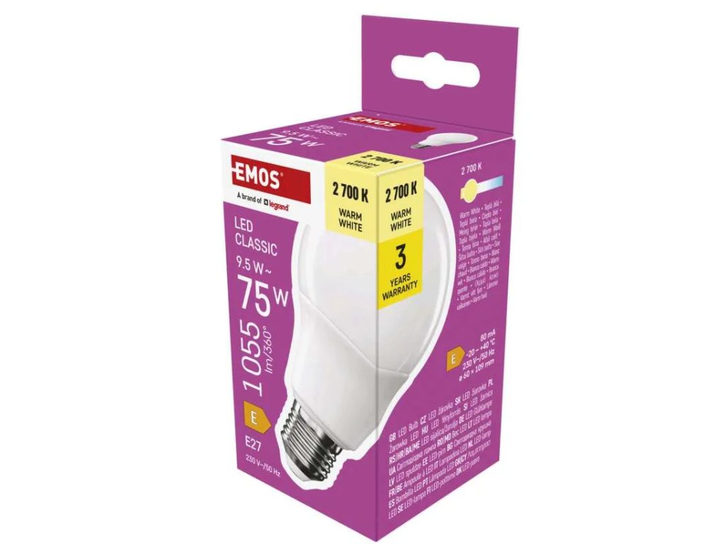LED žárovka Classic A60 / E27 / 9,5 W (75 W) / 1055 lm / teplá bílá