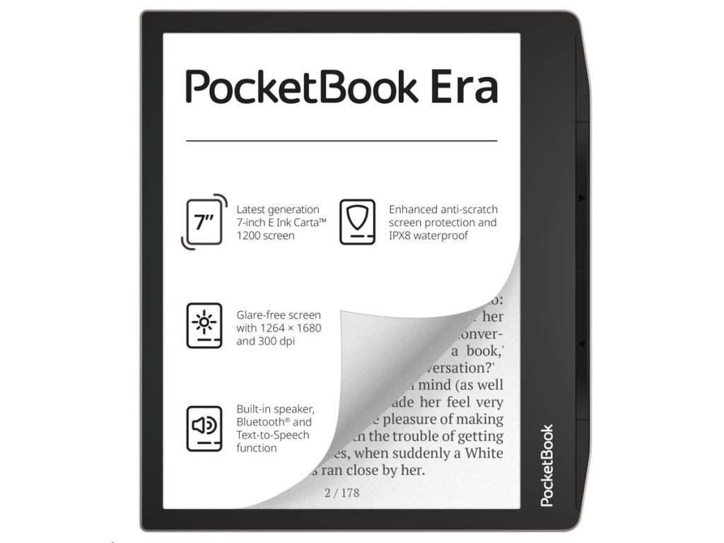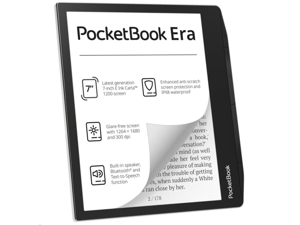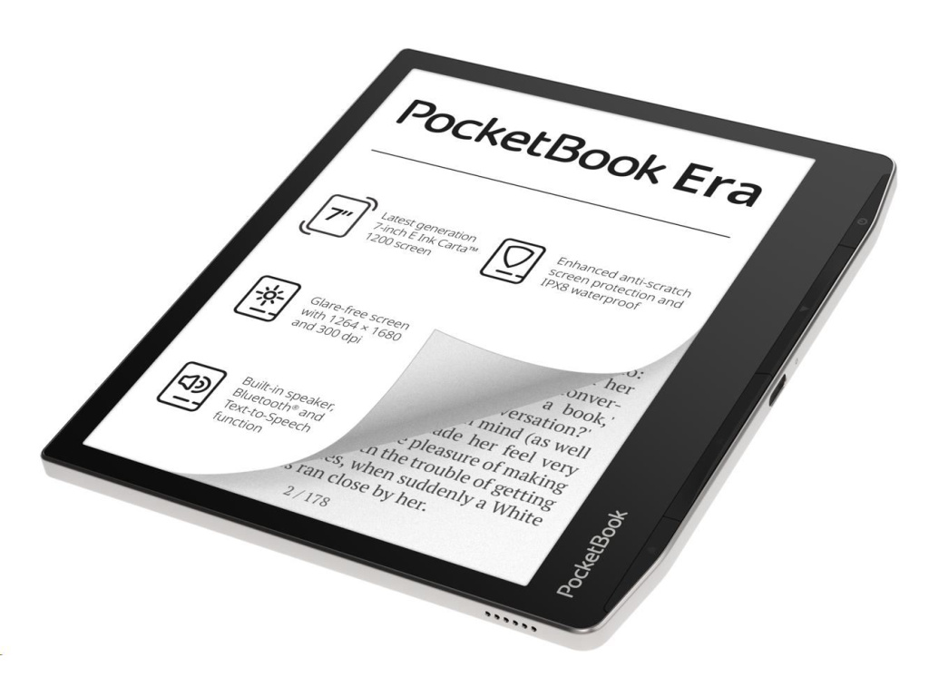Čtečka Pocket Book 700 Era je vybavena 7" displejem E Ink Carta 1200, který funguje na principu elektronického inkoustu, takže při čtení šetří vaše oči.
