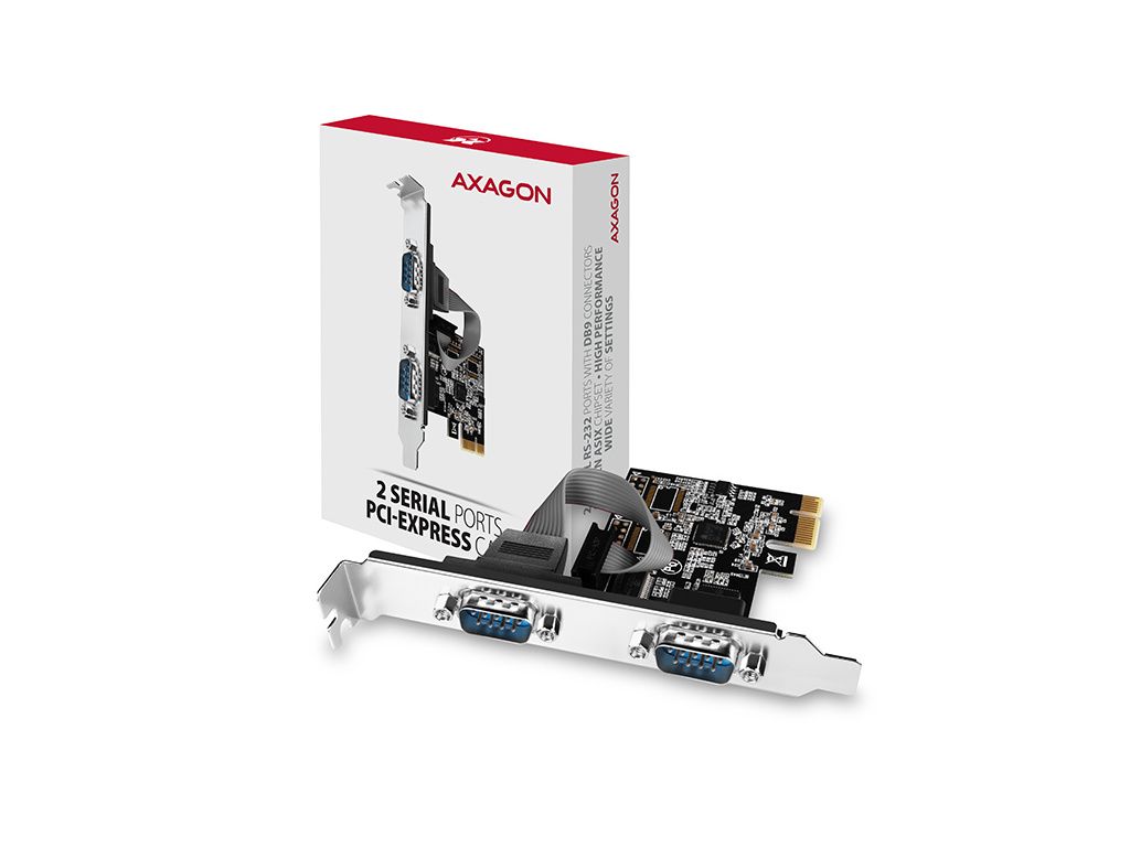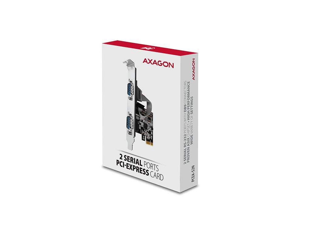 AXAGON PCEA-S2N, PCIe řadič - 2x sériový port (RS232) 250 kbps, vč. LP, PCEA-S2N