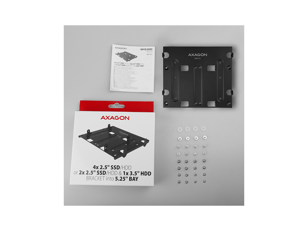 AXAGON RHD-435, kovový rámeček pro 4x 2.5'' nebo 2x 2.5'' HDD/SSD a 1x 3.5'' HDD do 5.25'' pozice, RHD-435
